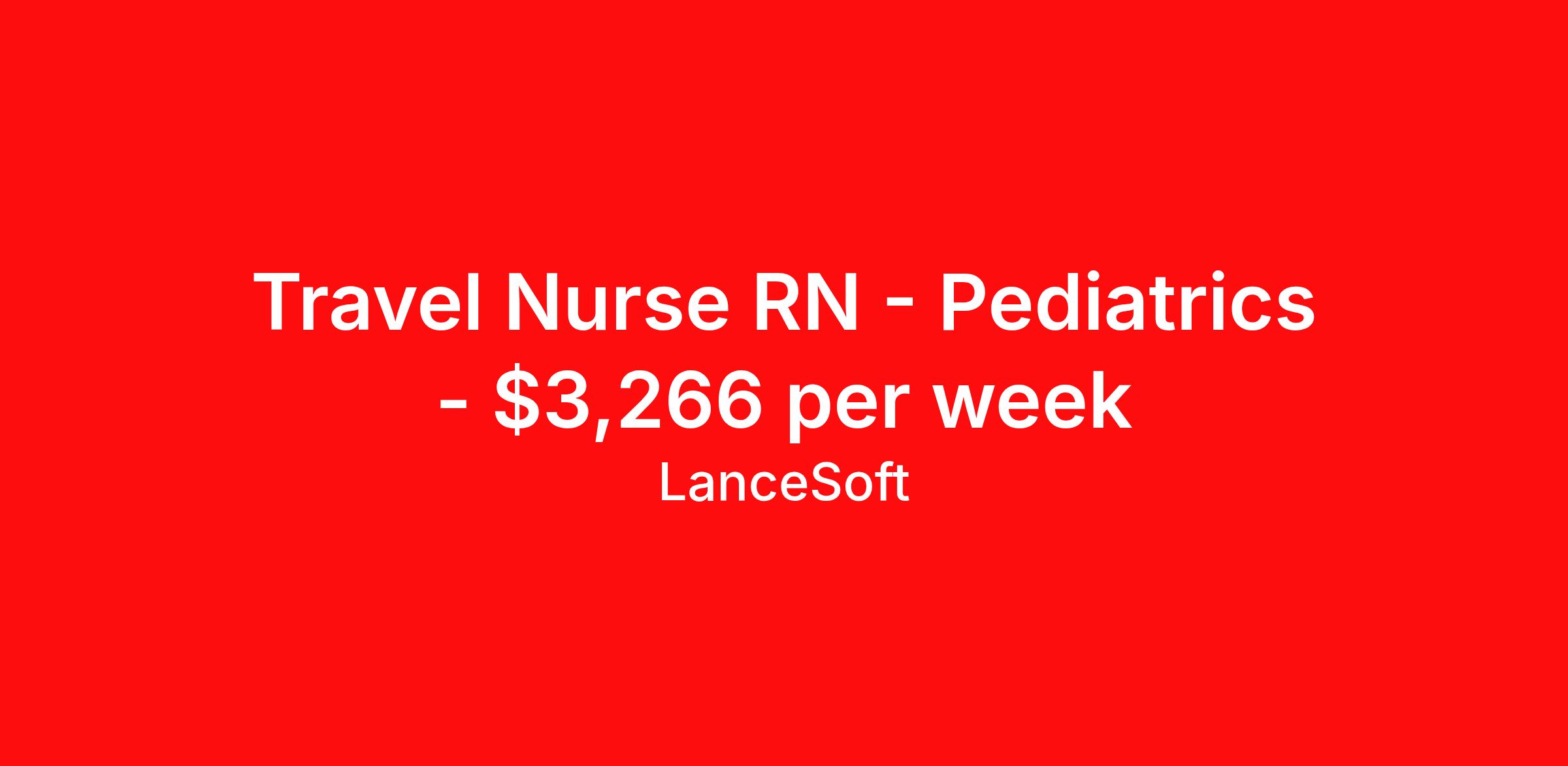 Travel Nurse RN - Pediatrics - $3,266 per week