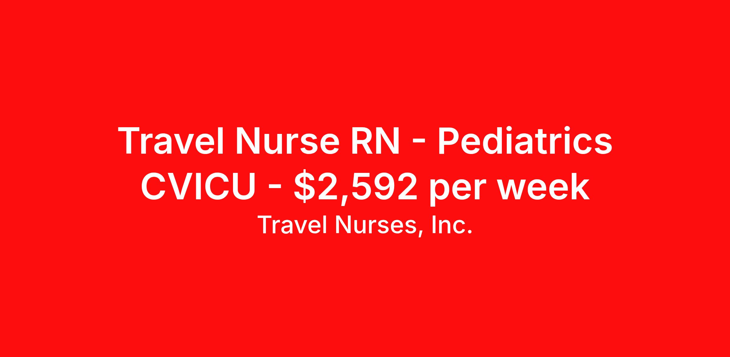 Travel Nurses, Inc. is seeking a travel nurse RN Pediatrics CVICU for a travel nursing job in Oklahoma City, Oklahoma. Job Description & Requirements Specialty: Pediatrics CVICU Discipline: RN Start Date: ASAP Duration: 13 weeks 36 hours per week Shift: 12 hours Employment Type: Travel Travel Nurses, Inc. Job ID 303196. Pay package is based on 12 hour shifts and 36 hours per week (subject to confirmation) with tax-free stipend amount to be determined. Posted job title: RN CVICU Pediatrics - FS About Travel Nurses, Inc. Travel Nurses, Inc. is a leading healthcare staffing agency that provides healthcare professionals with opportunities to work across the country. Founded by nurses in 1988, TNI has more than 30 years of experience in the industry. The agency initially focused on staffing operating room settings in the MidSouth. However, this quickly evolved to encompass all nursing specialties and allied health fields nationwide. At the heart of our mission is a profound respect for nurses, whom we consider the cornerstone of healthcare. This acknowledgment extends beyond the nursing profession alone. Travel Nurses, Inc. now proudly embraces a wide array of healthcare professionals, recognizing their crucial roles in our collective mission. Travel Nurses, Inc. is dedicated to providing comprehensive support and opportunities that will help facilitate complete career mobility in the healthcare field. Our commitment to transparency ensures that all professionals, not just nurses, can confidently accept any assignment without financial uncertainties. We prioritize our professionals’ well-being with comprehensive benefits packages, including day-one healthcare coverage, competitive salaries, bonuses and incentives. This underscores our unwavering commitment to offering the best possible rewards and support for all the professionals we serve. Benefits Weekly pay Continuing Education 401k retirement plan Wellness and fitness programs Mileage reimbursement Referral bonus Employee assistance programs Medical benefits Dental benefits Vision benefits Benefits start day 1 License and certification reimbursement Life insurance Retention bonus