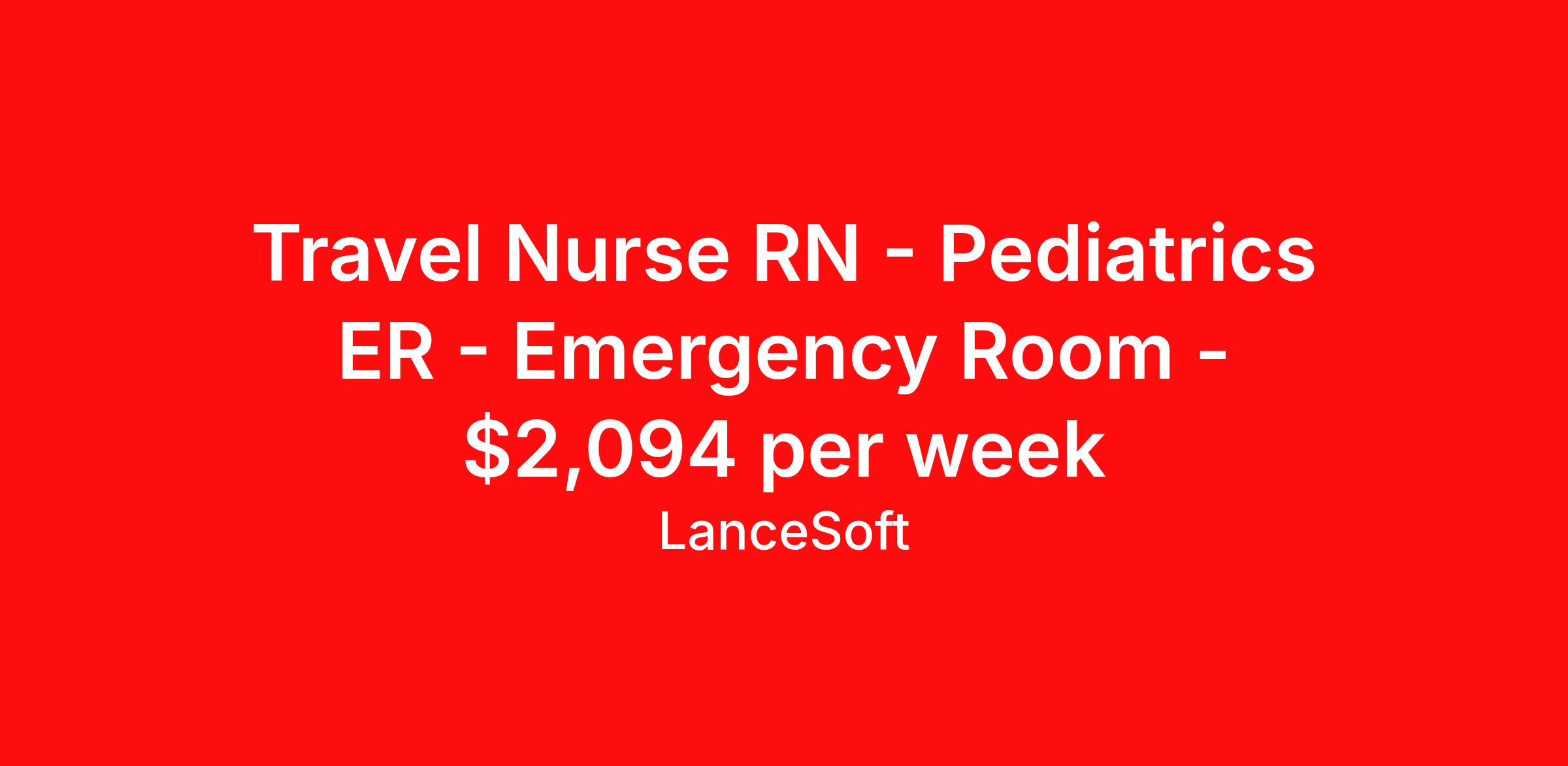 Travel Nurse RN - Pediatrics ER - Emergency Room - $2,094 per week