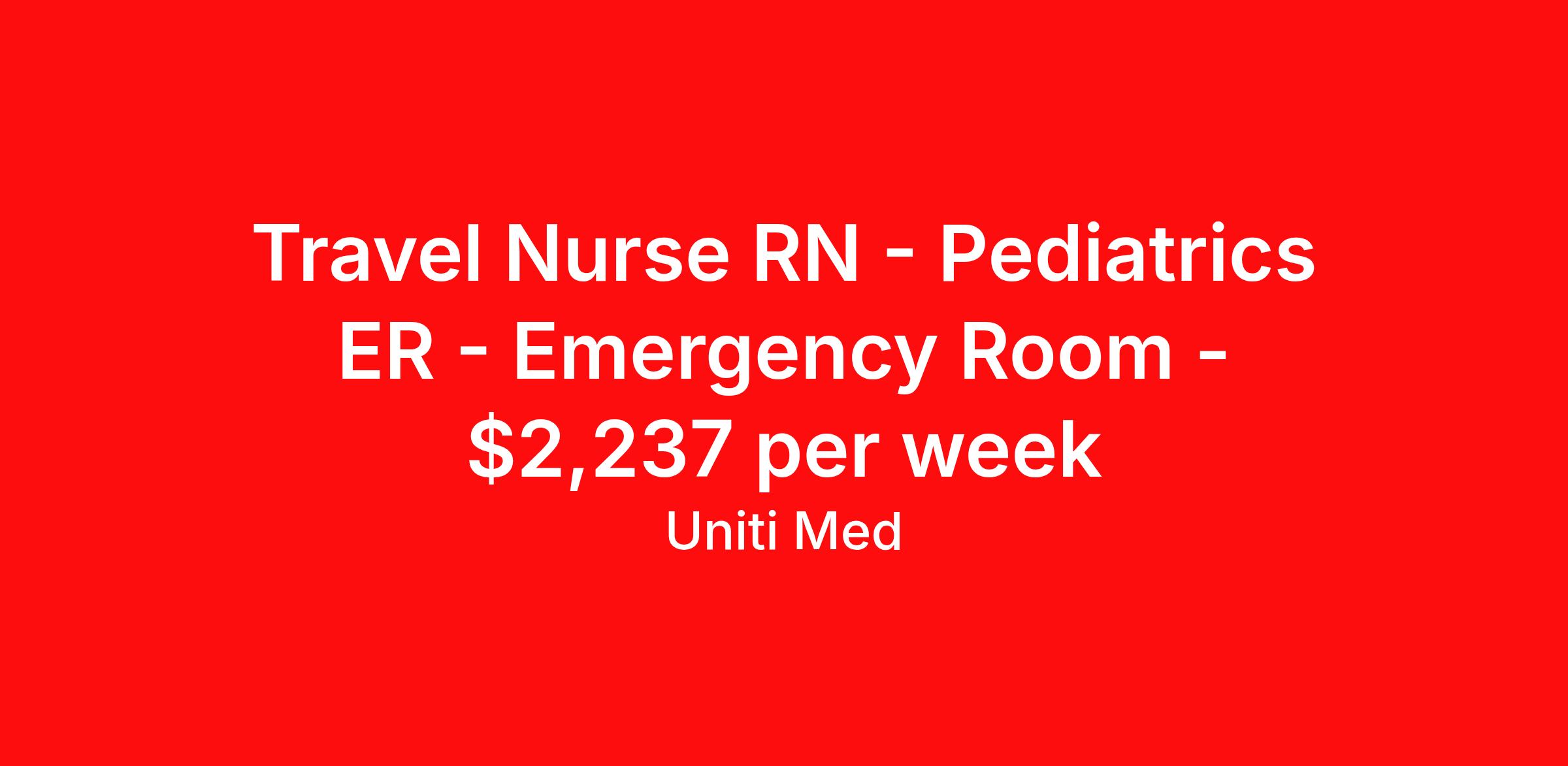 Travel Nurse RN - Pediatrics ER - Emergency Room - $2,237 per week