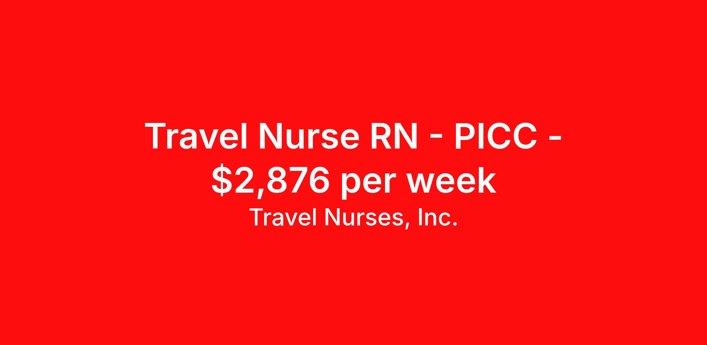 Travel Nurses, Inc. is seeking a travel nurse RN PICC for a travel nursing job in Roseville, California. Job Description & Requirements Specialty: PICC Discipline: RN Start Date: ASAP Duration: 13 weeks 40 hours per week Shift: 8 hours Employment Type: Travel Travel Nurses, Inc. Job ID 302934. Pay package is based on 8 hour shifts and 40 hours per week (subject to confirmation) with tax-free stipend amount to be determined. Posted job title: PICC Registered Nurse About Travel Nurses, Inc. Travel Nurses, Inc. is a leading healthcare staffing agency that provides healthcare professionals with opportunities to work across the country. Founded by nurses in 1988, TNI has more than 30 years of experience in the industry. The agency initially focused on staffing operating room settings in the MidSouth. However, this quickly evolved to encompass all nursing specialties and allied health fields nationwide. At the heart of our mission is a profound respect for nurses, whom we consider the cornerstone of healthcare. This acknowledgment extends beyond the nursing profession alone. Travel Nurses, Inc. now proudly embraces a wide array of healthcare professionals, recognizing their crucial roles in our collective mission. Travel Nurses, Inc. is dedicated to providing comprehensive support and opportunities that will help facilitate complete career mobility in the healthcare field. Our commitment to transparency ensures that all professionals, not just nurses, can confidently accept any assignment without financial uncertainties. We prioritize our professionals’ well-being with comprehensive benefits packages, including day-one healthcare coverage, competitive salaries, bonuses and incentives. This underscores our unwavering commitment to offering the best possible rewards and support for all the professionals we serve. Benefits Weekly pay Continuing Education 401k retirement plan Wellness and fitness programs Mileage reimbursement Referral bonus Employee assistance programs Medical benefits Dental benefits Vision benefits Benefits start day 1 License and certification reimbursement Life insurance Retention bonus