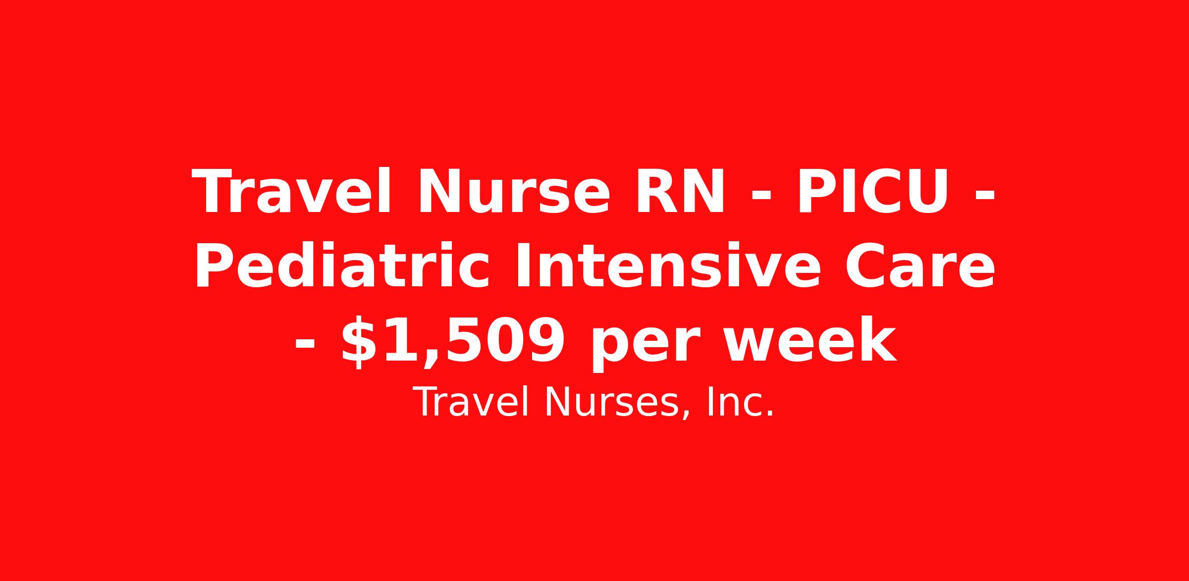 Travel Nurses, Inc. is seeking a travel nurse RN PICU - Pediatric Intensive Care for a travel nursing job in Austin, Texas. Job Description & Requirements Specialty: PICU - Pediatric Intensive Care Discipline: RN Start Date: ASAP Duration: 13 weeks 36 hours per week Shift: 12 hours Employment Type: Travel Travel Nurses, Inc. Job ID 301271. Pay package is based on 12 hour shifts and 36 hours per week (subject to confirmation) with tax-free stipend amount to be determined. Posted job title: CONTRACT - RN - PICU (645) - 13 WEEKS - 7:00P-7:00A About Travel Nurses, Inc. Travel Nurses, Inc. is a leading healthcare staffing agency that provides healthcare professionals with opportunities to work across the country. Founded by nurses in 1988, TNI has more than 30 years of experience in the industry. The agency initially focused on staffing operating room settings in the MidSouth. However, this quickly evolved to encompass all nursing specialties and allied health fields nationwide. At the heart of our mission is a profound respect for nurses, whom we consider the cornerstone of healthcare. This acknowledgment extends beyond the nursing profession alone. Travel Nurses, Inc. now proudly embraces a wide array of healthcare professionals, recognizing their crucial roles in our collective mission. Travel Nurses, Inc. is dedicated to providing comprehensive support and opportunities that will help facilitate complete career mobility in the healthcare field. Our commitment to transparency ensures that all professionals, not just nurses, can confidently accept any assignment without financial uncertainties. We prioritize our professionals’ well-being with comprehensive benefits packages, including day-one healthcare coverage, competitive salaries, bonuses and incentives. This underscores our unwavering commitment to offering the best possible rewards and support for all the professionals we serve. Benefits Weekly pay Continuing Education 401k retirement plan Wellness and fitness programs Mileage reimbursement Referral bonus Employee assistance programs Medical benefits Dental benefits Vision benefits Benefits start day 1 License and certification reimbursement Life insurance Retention bonus