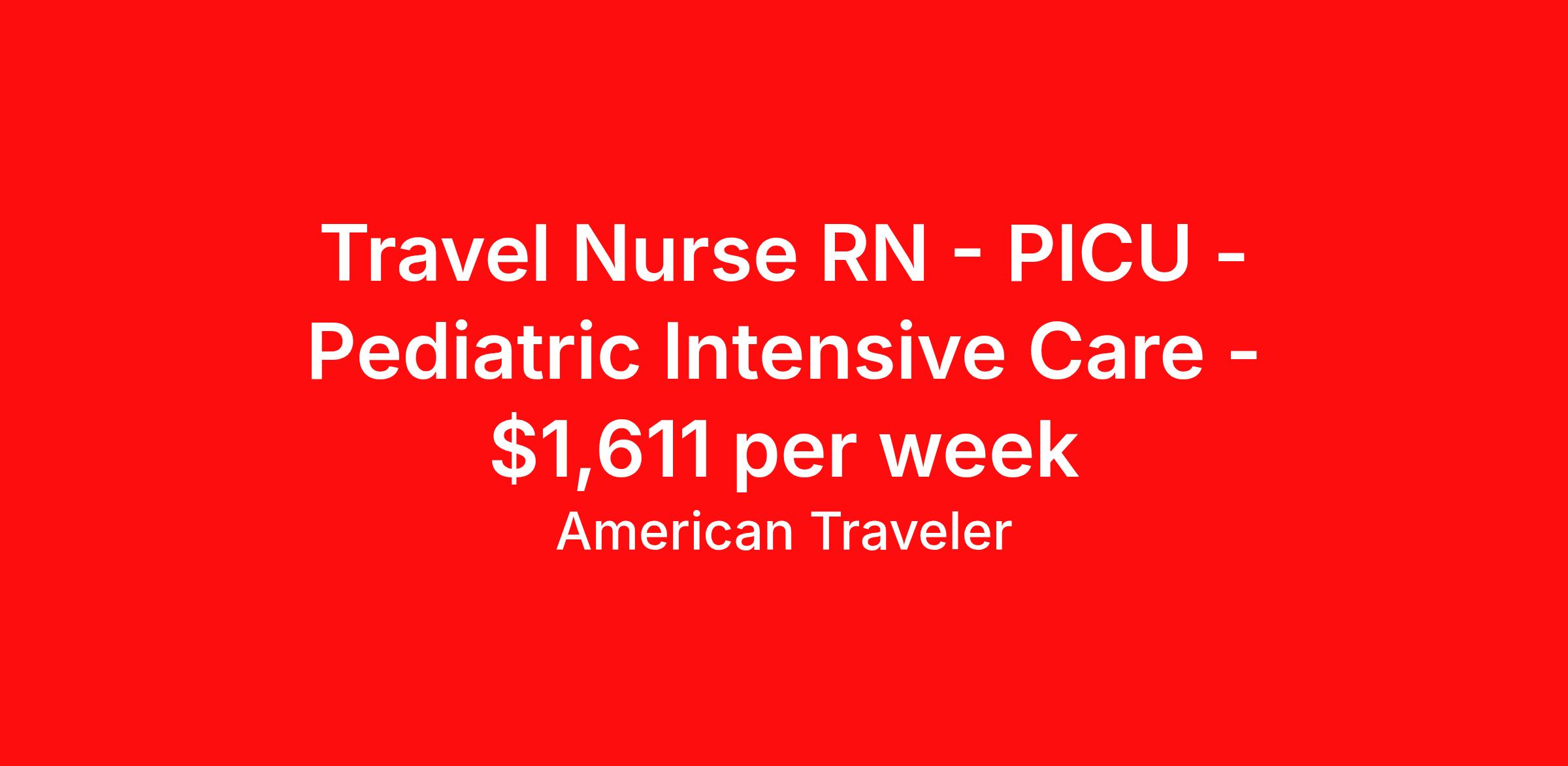 Travel Nurse RN - PICU - Pediatric Intensive Care - $1,611 per week