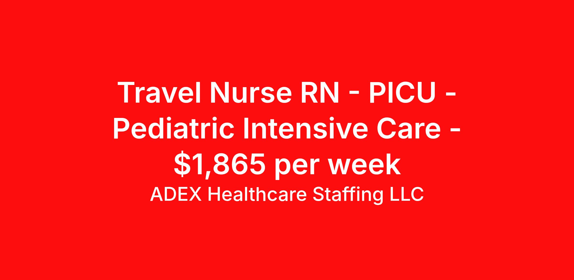 ADEX Healthcare Staffing LLC is seeking a travel nurse RN PICU - Pediatric Intensive Care for a travel nursing job in Marietta, Georgia. Job Description & Requirements Specialty: PICU - Pediatric Intensive Care Discipline: RN Start Date: ASAP Duration: 13 weeks 36 hours per week Shift: 12 hours, nights Employment Type: Travel RN Position Job Notes: Travel or Local Registered Nurse needed for ASAP start. A minimum of 2 years of recent hospital bedside experience is required. Candidates must be able to start within 5 weeks. Opportunity for extension upon successful completion of the initial assignment. $750 referral bonus available. Opportunity: RN - PICU Inpatient Job Details: • Work night shifts from 6:45 PM to 7:15 AM • 8-week contract assignment beginning after 9/27 • Manage and oversee care of complex and high acuity/critical pediatric patients • Perform hourly assessments and monitoring at minimum • Provide culturally and developmentally appropriate direct clinical care to patients • Ventilator, BiPAP, CPAP, and Oscillator management required • Cardiac rhythm (EKG) assessment and analysis • Assess, monitor, and trend continuous vitals including cardiac rhythm, respiratory rate, O2 sat, BP, and arterial line waveforms • Manage and appropriately titrate vasoactive, sedation, and insulin drips • Run and analyze bedside point-of-care testing (iSTAT, ABG/VBG) • Assist with bedside procedures including sedated lumbar punctures, arterial line placement, CVL/PICC placement, intubation, and chest tube placement • Support and/or lead pediatric codes using PALS algorithm • Perform sterile dressing changes • Associates or Bachelor's degree in Nursing required • Georgia RN license or Multi-state Compact license required • BLS certification required upon hire • PALS certification required within 180 days • Less than 1 year experience acceptable with completion of accredited nursing school • Direct patient care experience preferred • Strong interpersonal and collaborative skills required • Ability to function in fast-paced emergency environment Facility: This healthcare facility operates a specialized Pediatric Intensive Care Unit providing critical care services for complex pediatric patients. The facility follows evidence-based practice models and maintains high standards for patient safety and quality care. The PICU is equipped with advanced monitoring technology and life support equipment, supporting a collaborative interdisciplinary approach to pediatric critical care with comprehensive specialty services available. Location: Marietta, GA Marietta offers a perfect blend of suburban comfort and metropolitan convenience, located just northwest of Atlanta with easy access to the city's amenities while maintaining its own charming downtown area and rich historical character. The area provides excellent dining, shopping, and recreational opportunities, making it an attractive location for healthcare professionals seeking both career growth and quality of life. Adex Job ID JR-52069. Pay package is based on 12 hour shifts and 36 hours per week (subject to confirmation) with tax-free stipend amount to be determined. About ADEX Healthcare Staffing LLC ADEX has been placing healthcare professionals across the US since 2004. Originally founded in Atlanta, GA, the company's headquarters are now located in Tampa, FL. JCAHO certified since 2009. Benefits Referral bonus