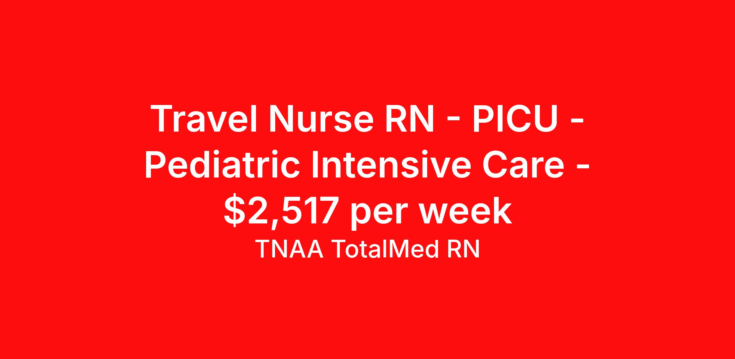 Travel Nurse RN - PICU - Pediatric Intensive Care - $2,517 per week