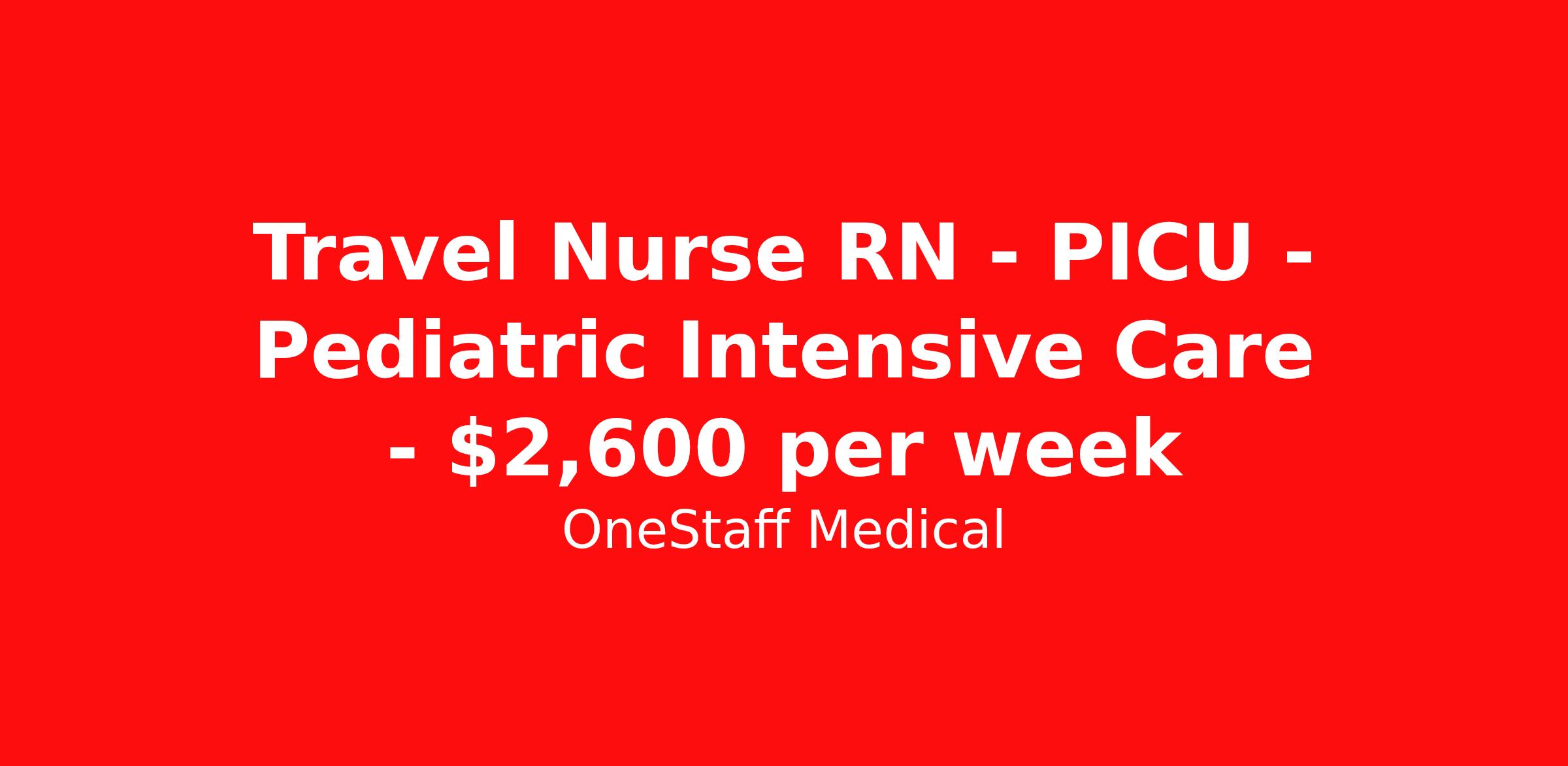 Travel Nurse RN - PICU - Pediatric Intensive Care - $2,600 per week