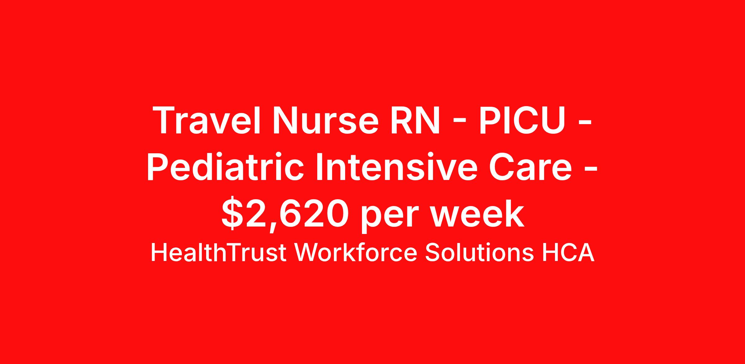 HealthTrust Workforce Solutions HCA is seeking a travel nurse RN PICU - Pediatric Intensive Care for a travel nursing job in Asheville, North Carolina. Job Description & Requirements Specialty: PICU - Pediatric Intensive Care Discipline: RN Duration: 13 weeks 36 hours per week Shift: 12 hours, nights Employment Type: Travel Entrust Your Career to HealthTrust! At HealthTrust, we believe that healthcare is not defined by the four walls in which it is practiced; it’s defined by its people. We pride ourselves on crafting opportunities that expand skill sets, broaden career horizons, provide economic stability, and cultivate personal growth. HealthTrust Offers: Competitive Pay Packages Guaranteed hours Weekly direct deposit options 401k with Company Match Earn up to $750 for referrals To get started, you will need: Minimum of 1 year in specialty BLS and PALS required HealthTrust Benefits: Opportunities for a lifetime: When you become a part of the HCA family, you will have exclusive access to more opportunities than any other healthcare system in the nation. At HWS, we help open the door to a lifetime of lasting career opportunities. A culture of care: Our clinicians have made HWS an industry leader for over 25 years. We are passionate about our mission that, above all else, we are committed to the care and improvement of human life. Career Development: As a wholly owned subsidiary of HCA Healthcare, HWS is a preferred partner to thousands of top-performing hospitals. We provide our healthcare professionals with first-priority access to more than 200,000 jobs nationwide. We are uniquely positioned to offer you exclusive and direct access to HCA Healthcare’s vast network of facilities. Let us open the door to nationwide opportunities that fit your lifestyle! We are an equal opportunity employer and value diversity at our company. We do not discriminate on the basis of race, religion, color, national origin, gender, sexual orientation, age, marital status, veteran status, or disability status. This is just one of many opportunities we offer across the country. If you're interested in this specific role or want to discuss other openings, please feel free to respond to this post or reach out to me directly at (text or call). About HealthTrust Workforce Solutions HCA At HealthTrust Workforce Solutions, healthcare is not just about the four walls of a facility but about the people who provide and receive care. Our focus is on empowering healthcare professionals to deliver exceptional patient experiences by providing them with the necessary skills, tools, and support. We partner with healthcare facilities nationwide to ensure that the right professionals are in the right roles. We prioritize our clinicians by giving them a voice and access to opportunities to fulfill their mission of improving lives by providing quality patient care. We are committed to our core values of Trust, Innovation, Adaptability, Courage, and Accountability. We are dedicated to positively impacting the healthcare industry by providing first-priority access to more than 200,000 jobs nationwide to our healthcare professionals. Join us and be part of the HealthTrust family, where you can make a difference every day. We embrace our changing environment, and we maintain a culture that has a rich tradition of transforming itself to meet the challenges of the future. MISSION STATEMENT While putting great people in the right roles is essential, our mission is far greater. We want our clinicians to be part of the HealthTrust family, where healthcare professionals have a voice and are empowered with the right tools and opportunities to fulfill their personal mission of improving lives. Plus, as a preferred partner to thousands of top-performing hospitals, we provide our healthcare professionals with first-priority access to more than 200,000 jobs nationwide. Benefits Dental benefits Vision benefits Referral bonus Continuing Education Life insurance