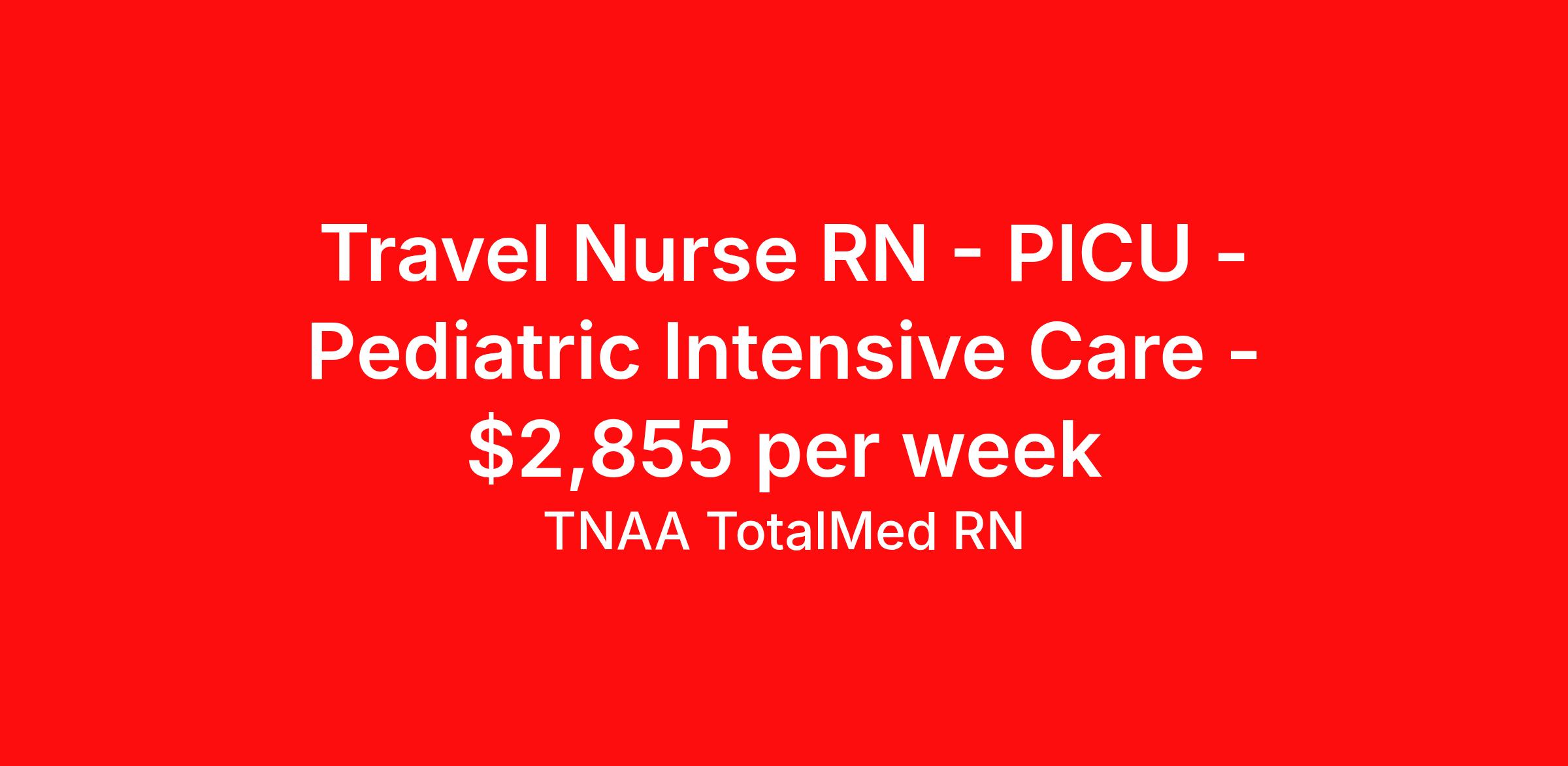 Travel Nurse RN - PICU - Pediatric Intensive Care - $2,855 per week
