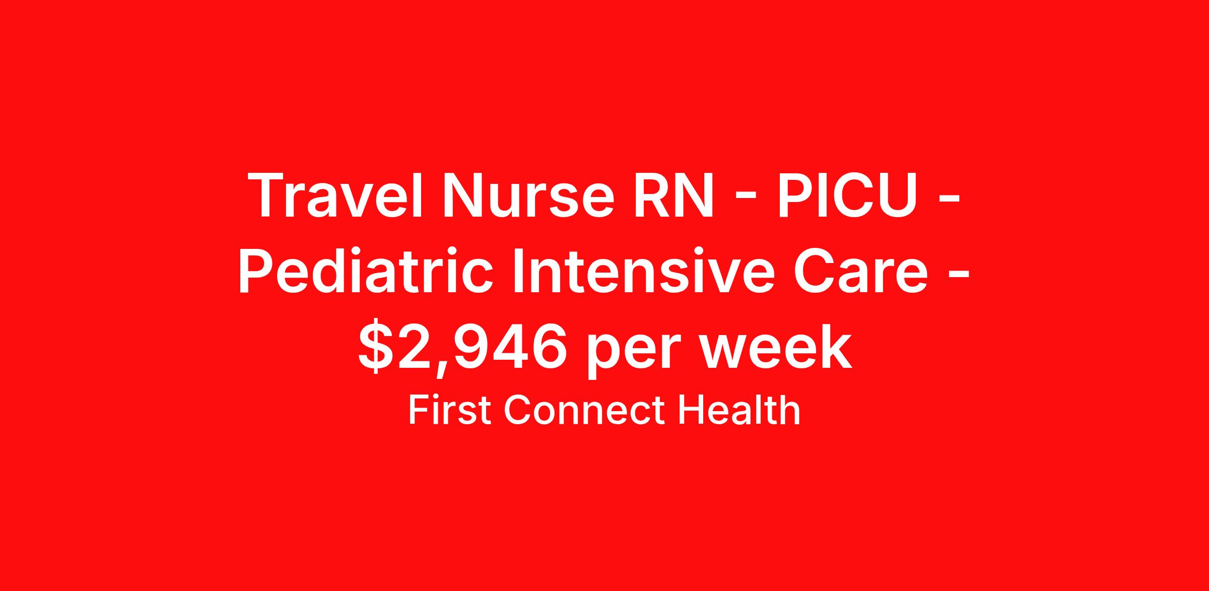 First Connect Health is seeking a travel nurse RN PICU - Pediatric Intensive Care for a travel nursing job in Bronx, New York. Job Description & Requirements Specialty: PICU - Pediatric Intensive Care Discipline: RN Start Date: 04/06/2026 Duration: 13 weeks 37.5 hours per week Shift: 8 hours, nights Employment Type: Travel PICU RN • 2 years of experience • BLS Certification, PALS • Night Shift • Active NY State RN License About First Connect Health At First Connect Health , we take pride in being a Joint Commission–certified healthcare staffing agency , headquartered in Newark, New Jersey. This prestigious certification is more than just a seal — it's a reflection of our commitment to excellence, safety, and quality in everything we do. By meeting the rigorous standards set by The Joint Commission, one of the most respected accrediting bodies in healthcare, we've demonstrated that our processes, compliance, and patient care standards are aligned with the highest levels of quality in the industry. But our dedication goes beyond certifications. Nurses choose First Connect Health because: ✅ Trust and Transparency: We foster honest communication, timely updates, and full transparency throughout your placement journey. ✅ Best Pay & Benefits: We offer industry-leading compensation packages, along with benefits that support your career goals. ✅ Flexibility & Choice: Whether you're seeking short-term assignments, long-term contracts, or local opportunities, we provide the flexibility to suit your preferences. ✅ Personalized Support: Our recruiters take the time to understand your needs, guiding you with care, respect, and responsiveness at every step. When you work with First Connect Health, you're not just another number — you're a valued professional. Join a team that’s focused on your success, your well-being, and your future in healthcare. Benefits Medical benefits Sick pay 401k retirement plan Weekly pay Referral bonus