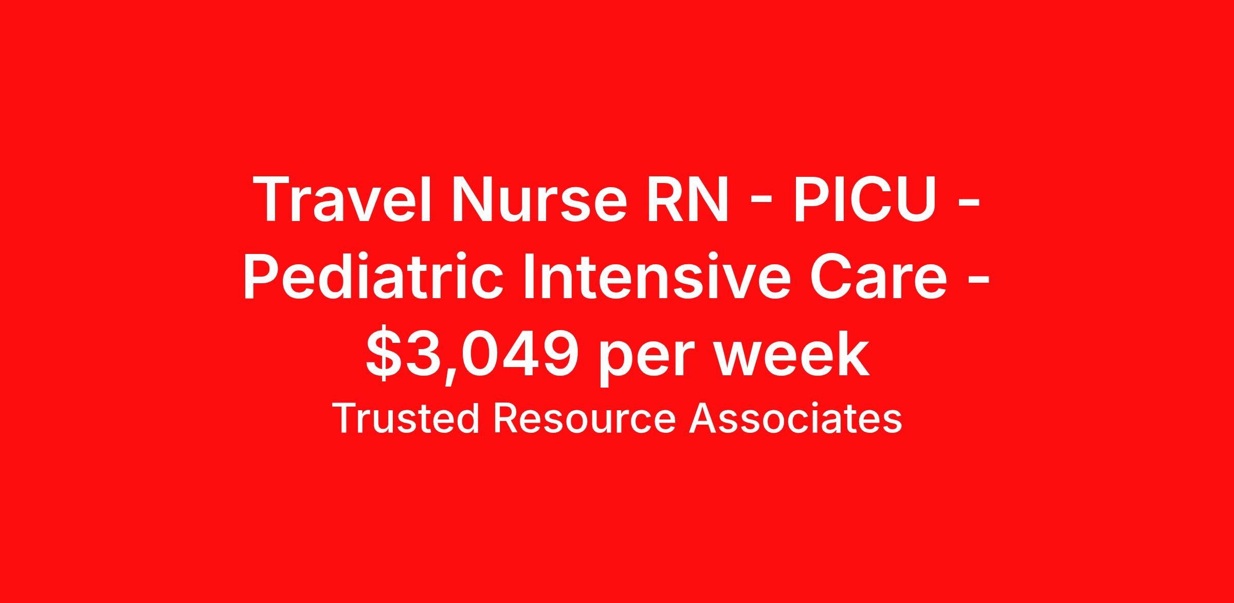 Travel Nurse RN - PICU - Pediatric Intensive Care - $3,049 per week