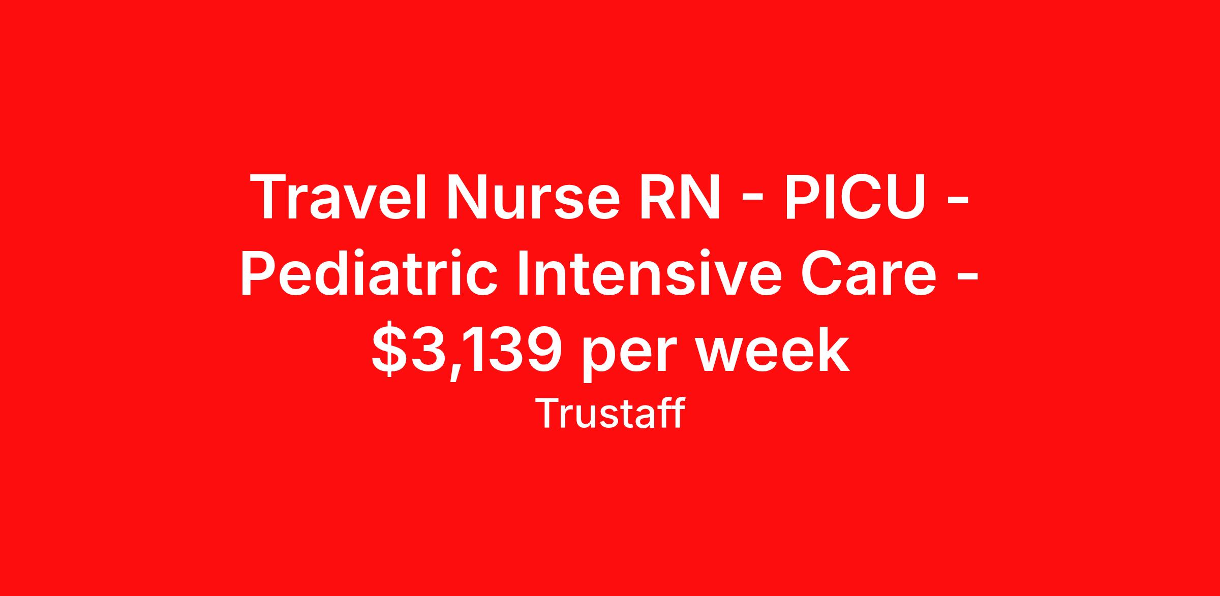 Travel Nurse RN - PICU - Pediatric Intensive Care - $3,139 per week