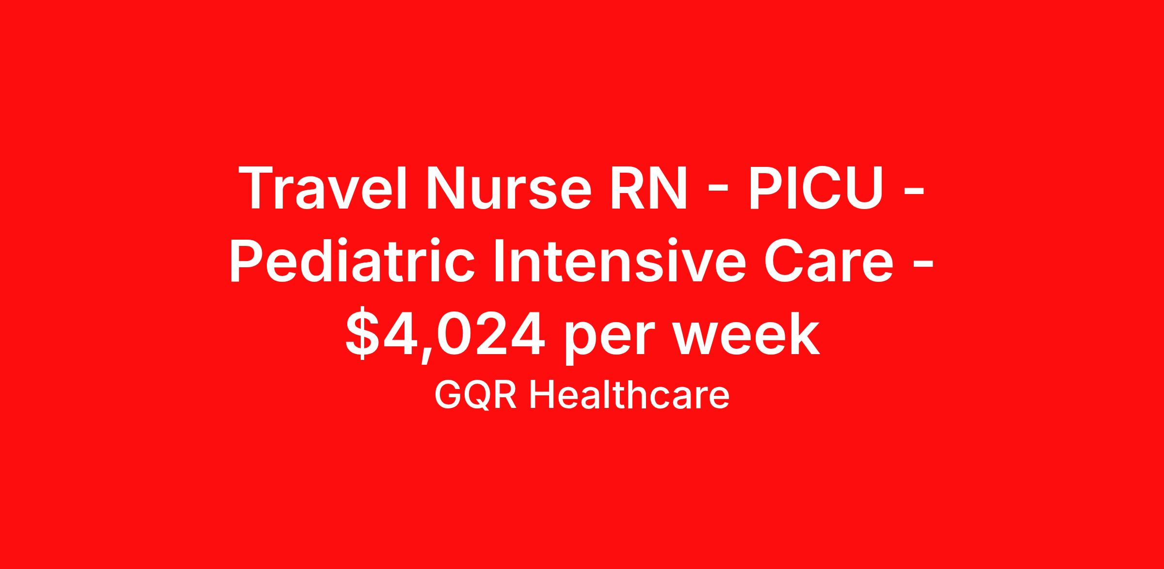 Travel Nurse RN - PICU - Pediatric Intensive Care - $4,024 per week