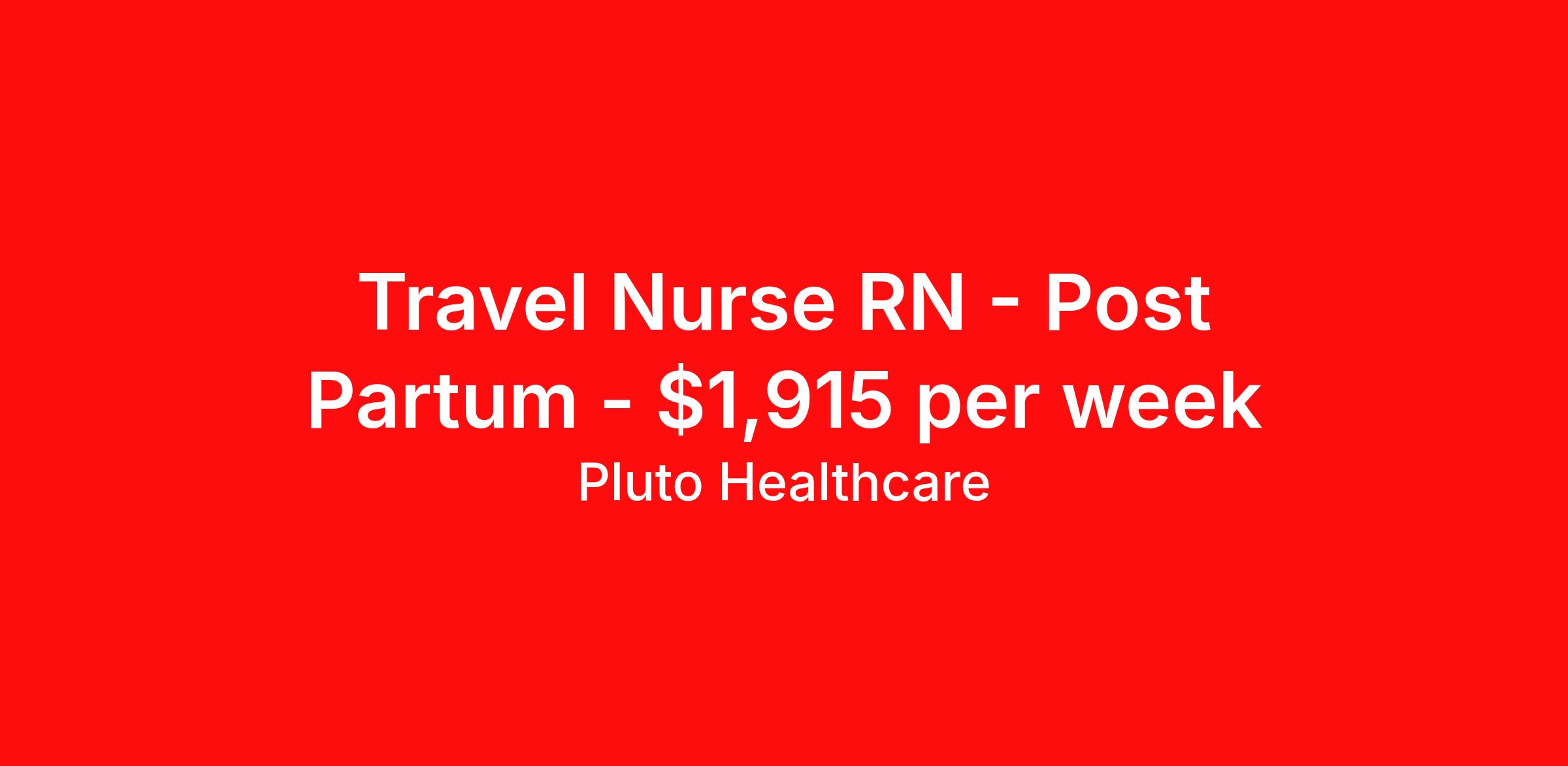 Pluto Healthcare is seeking a travel nurse RN Post Partum for a travel nursing job in Columbus, Ohio. Job Description & Requirements Specialty: Post Partum Discipline: RN Duration: 13 weeks 36 hours per week Shift: 12 hours, days, nights Employment Type: Travel Minimum 2 year of postpartum experience BLS/IV certification IV start skills EPIC experience Minimum 2 year of postpartum experience BLS/IV certification IV start skills EPIC experience Benefits Weekly pay Holiday Pay Guaranteed Hours Referral bonus Medical benefits Dental benefits Vision benefits Benefits start day 1