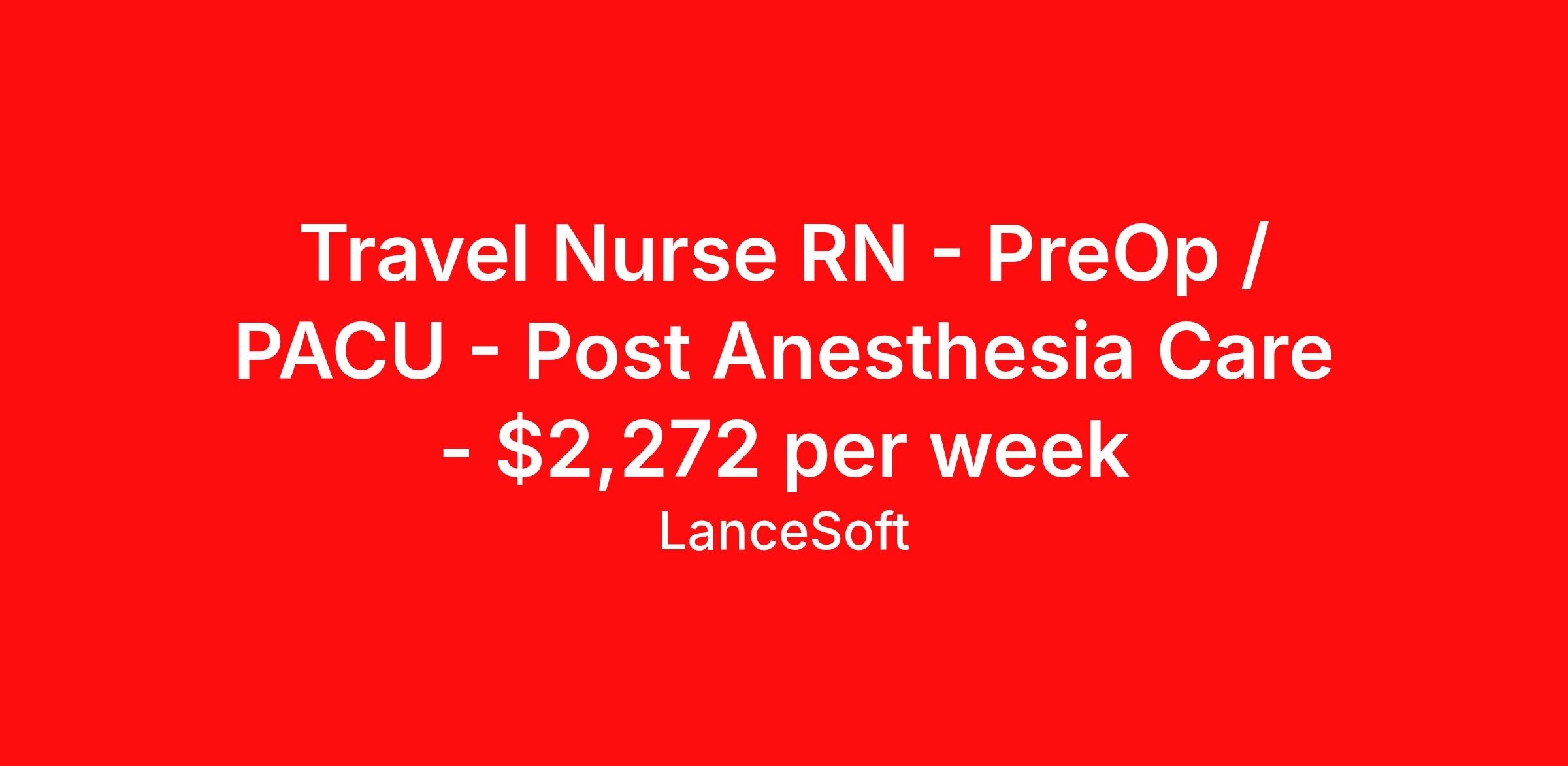 Travel Nurse RN - PreOp / PACU - Post Anesthesia Care - $2,272 per week