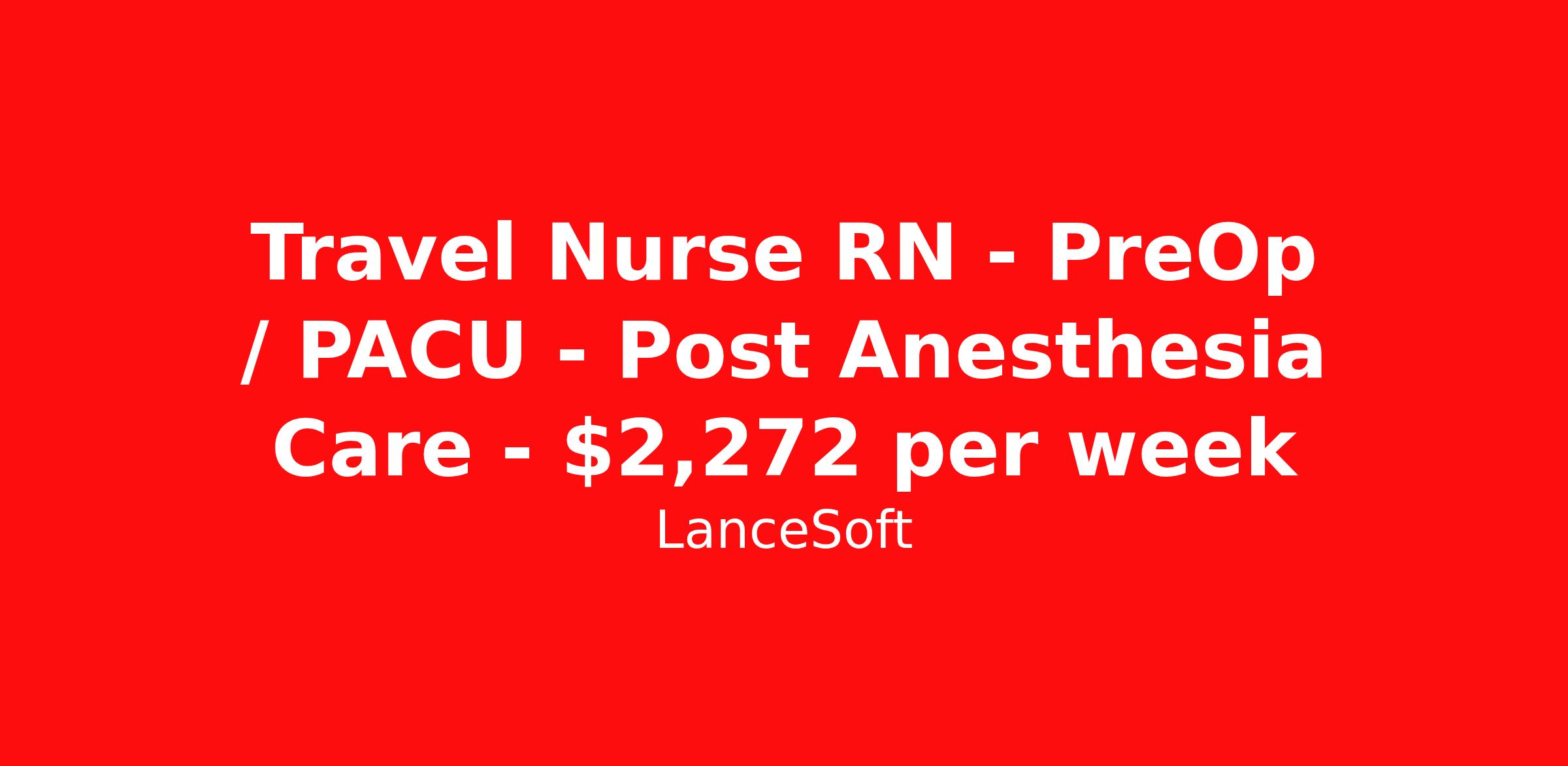 Travel Nurse RN - PreOp / PACU - Post Anesthesia Care - $2,272 per week