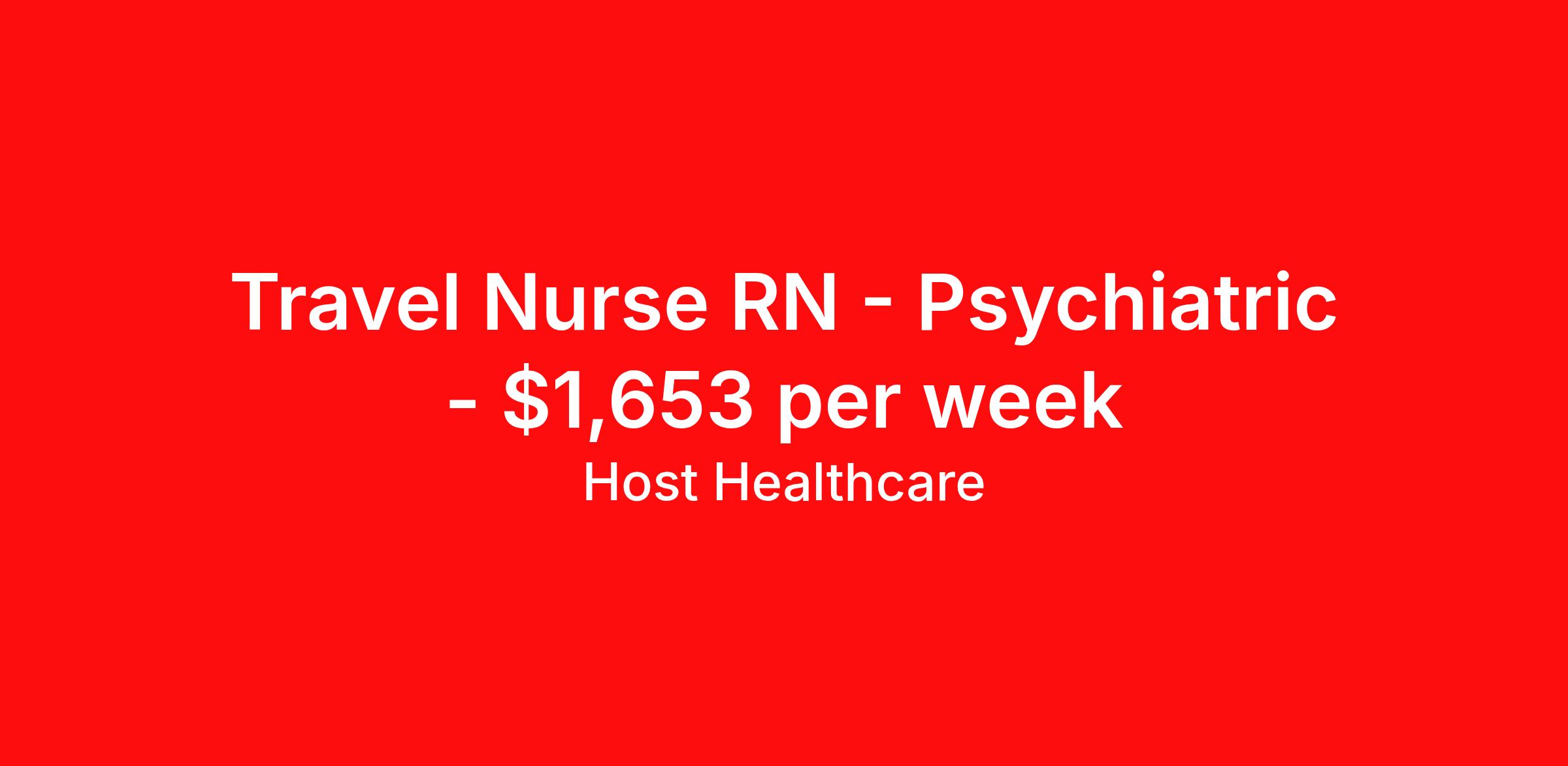 Host Healthcare is seeking a travel nurse RN Psychiatric for a travel nursing job in Columbia, Tennessee. Job Description & Requirements Specialty: Psychiatric Discipline: RN Start Date: 04/06/2026 Duration: 13 weeks 36 hours per week Shift: 12 hours, nights Employment Type: Travel Host Healthcare Job ID a1fVX000002xYirYAE. Pay package is based on 12 hour shifts and 36 hours per week (subject to confirmation) with tax-free stipend amount to be determined. Posted job title: RN - Psychiatry About Host Healthcare At Host Healthcare, we provide a truly comfortable experience as you explore your travel nursing, therapy, or allied career. We make your travel healthcare journey easy by taking care of all the details, so you don’t have to. We are on a mission to help others live better and we do this by helping the healers of the world be as comfortable as possible. With access to tens of thousands of travel nursing, therapy, and allied jobs in all 50 states, our responsive and friendly recruiters find your dream position based on what’s important to you. During your assignment, get access to premium benefits, including Day 1 medical that continues up to 30 days between assignments, 401K matching, travel reimbursements, dedicated housing support, and more. We also offer 24/7 support from our team and access to our on-staff clinicians so you can feel comfortable and confident throughout your entire assignment. Travel comfortably with Host Healthcare. Benefits Referral bonus School loan reimbursement Vision benefits Wellness and fitness programs Company provided housing options License and certification reimbursement Life insurance Medical benefits Mileage reimbursement Pet insurance Discount program Employee assistance programs Guaranteed Hours Health savings account Holiday Pay 401k retirement plan Continuing Education Dental benefits