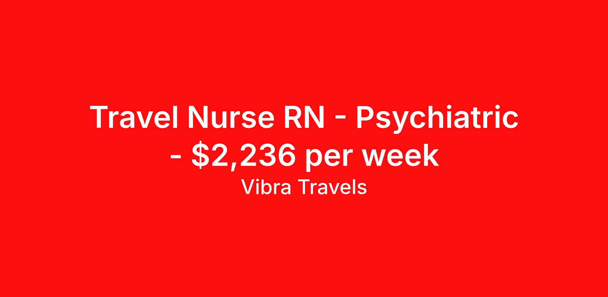Vibra Travels is seeking a travel nurse RN Psychiatric for a travel nursing job in Holyoke, Massachusetts. Job Description & Requirements Specialty: Psychiatric Discipline: RN Duration: 13 weeks 36 hours per week Shift: 12 hours, nights Employment Type: Travel VIBRA TRAVELS is looking for a CORPORATE TRAVEL REGISTERED NURSE to join our team. We look for nurses with acute care experience in ICU, step down, med surg/tele, and acute rehab. Benefits/Perks of working with VIBRA TRAVELS: • Work with 1 recruiter from start to finish and assignment to assignment • Local and Non-local positions available • Competitive hourly rate in addition to tax-free stipend (if applicable) • No pay cuts mid-contract • Referral bonus (up to $1000 per referral!) • License reimbursement if traveling to new state where new license is required • Your pick of assignments at facilities we own and operate nationwide (70) or partner facilities Qualifications/Skills: - Required Certifications: BLS, ACLS,NIHSS -State Licensure Requirements: TN or Compact RN license - Minimum years experience: 2 years experience in behavioral health or psych Additional Qualifications/Skills: • Previous acute care experience is strongly preferred. • Ability to project a professional image. • Knowledge of regulatory standards and compliance requirements. • Strong organizational, prioritizing and analytical skills. • Ability to make independent decisions when circumstances warrant. • Working knowledge of computer and software applications used in job functions. • Freedom from illegal use of and effects of use of drugs and alcohol in the workplace As an employee of Vibra Travels, you will be eligible to enroll in Medical and Prescription benefits once you meet the eligibility requirements outlined by the Affordable Care Act (ACA) Vibra Travels Job ID 20241216-6. Pay package is based on 12 hour shifts and 36 hours per week (subject to confirmation) with tax-free stipend amount to be determined. About Vibra Travels Regardless of the placement you’re seeking, you’ll experience the same great benefits when choosing Vibra Travels for your next contract. White-glove service, every step of the way: At Vibra Travels, we believe in providing top-notch service to our travel nurses. From the moment you first contact us, you’ll experience a level of support and care that sets us apart from the rest. Your recruiter, your partner: Unlike other travel nursing agencies, we believe in building one-on-one relationships with our clinicians. Your dedicated recruiter will be your advocate, guiding you through the entire process and ensuring your needs are met. Clinical support at your fingertips: We understand that being a traveler can sometimes be challenging. That’s why we have a dedicated clinical support team available to answer any questions or concerns you may have during your assignments. Nationwide placements, endless opportunities: With Vibra Travels, you’ll have access to placements across the nation. Whether you’re looking for an acute care, rehabilitation, critical care, or behavioral health hospital, we have opportunities waiting for you in every corner of the country. Join us today and experience traveling done different! Benefits Holiday Pay License and certification reimbursement Medical benefits Referral bonus