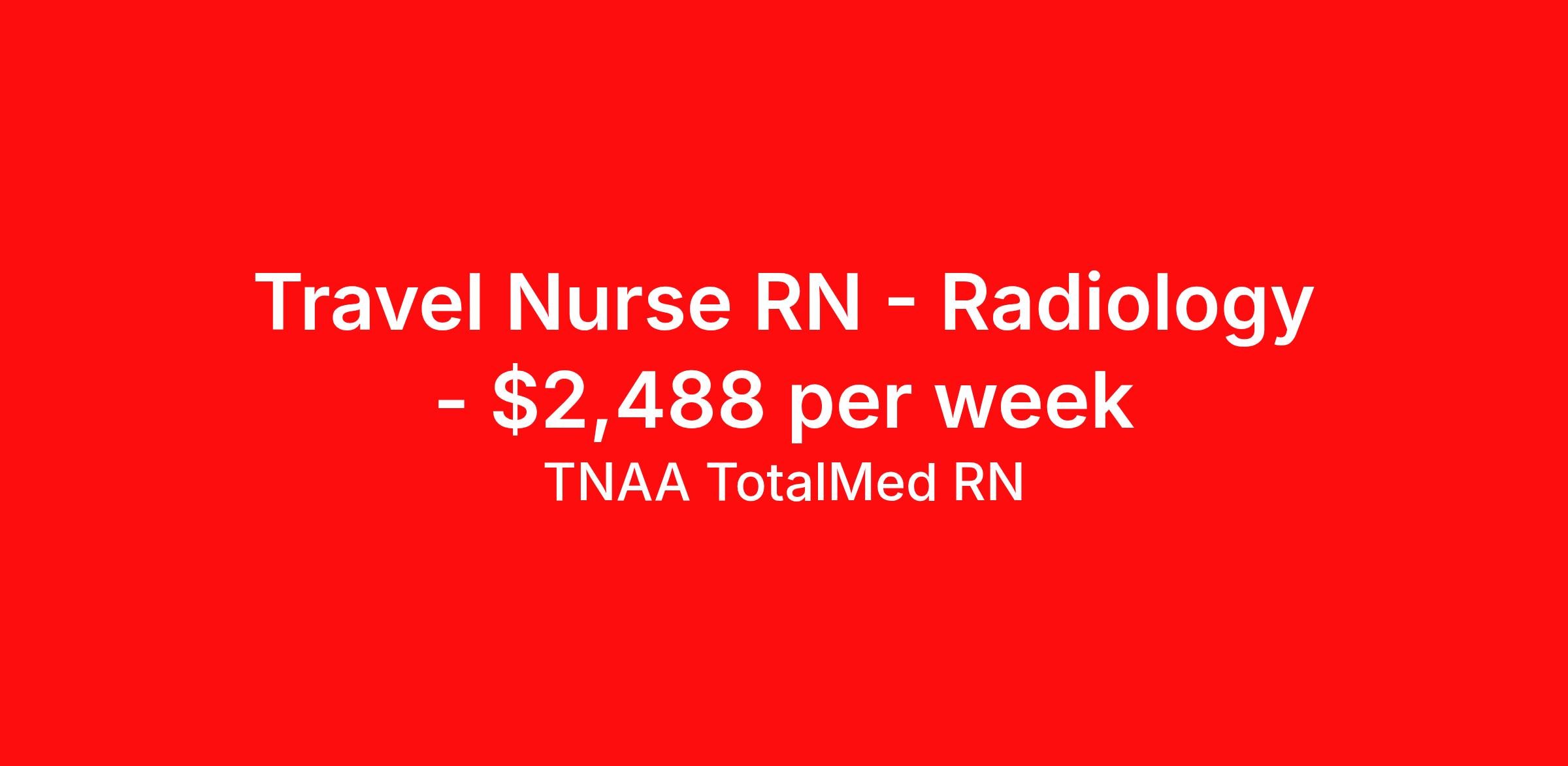 TNAA TotalMed RN is seeking a travel nurse RN Radiology for a travel nursing job in Elyria, Ohio. Job Description & Requirements Specialty: Radiology Discipline: RN Duration: 13 weeks 40 hours per week Shift: 8 hours, days Employment Type: Travel We're looking for Radiation Therapists for an immediate travel opening in Elyria, OH. The right Radiation Therapist should have 1 year of experience. Read below for more requirements. As a Radiation Therapist, you will be responsible for administering radiation treatments to patients as prescribed by a radiation oncologist. You'll play a critical role in the treatment of cancer and other diseases, ensuring patient safety, comfort, and accuracy throughout the therapy process. As a Radiation Therapist, you should be prepared to perform the following tasks: Administer prescribed doses of radiation to specific body parts using radiation therapy equipment Position patients accurately and comfortably for each treatment session Verify treatment settings and patient identity before delivering therapy Monitor patients during procedures to ensure safety and comfort Use imaging technology (e.g., CT, X-rays) to guide accurate treatment delivery Document treatment details and maintain accurate patient records Communicate effectively with physicians, dosimetrists, and other team members Educate patients and families on procedures, side effects, and care during treatment Inspect, maintain, and calibrate radiation therapy equipment regularly Follow strict radiation safety protocols for both patients and staff The ideal candidate must have at least one year of experience as a Radiation Therapist. Additionally, they should possess a current BLS certification and hold the ARRT (T) National Certification. State licensure may be required. Radiation Therapists should be able to stand for long periods, work precisely with complex equipment, and offer compassionate care in emotionally sensitive situations. Requirements*: BLS, ARRT (T), 2 Years * Additional certifications may be required before beginning an assignment. TotalMed Travel Job ID 1378465. Pay package is based on 8 hour shifts and 40 hours per week (subject to confirmation) with tax-free stipend amount to be determined. Posted job title: Therapy - Ther RAD - Travel About TNAA TotalMed RN TotalMed is a Top Ten, travel nursing and healthcare staffing agency with the mission of igniting purpose in healthcare. The organization staffs nurses, therapists, pharmacists, and other clinicians of all specialties in all 50 states. They offer local and travel jobs and match caregivers with the right organization to assist both facilities and patients. As an organization, they focus on putting highly-skilled staff into facilities to ensure adequate staffing for a better patient experience. TotalMed specializes in recruiting and placing healthcare professionals in travel, PRN, and permanent positions across the country in Nursing and Allied Health. Throughout 2020, the organization filled roles at even the most short-staffed facilities during the most challenging time in healthcare. By matching the right travel healthcare professional with the right organization, TotalMed continues to offer a lifeline to facilities and their patients. Benefits Weekly pay Guaranteed Hours Continuing Education 401k retirement plan Sick pay Wellness and fitness programs Referral bonus Employee assistance programs Medical benefits Dental benefits Vision benefits Benefits start day 1