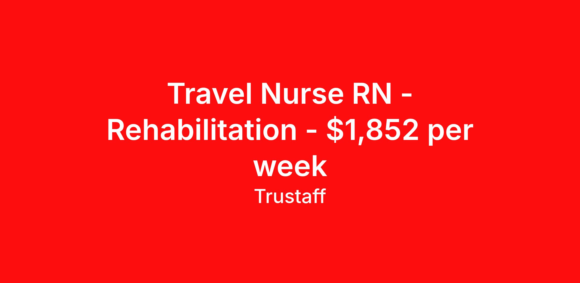 Travel Nurse RN - Rehabilitation - $1,852 per week