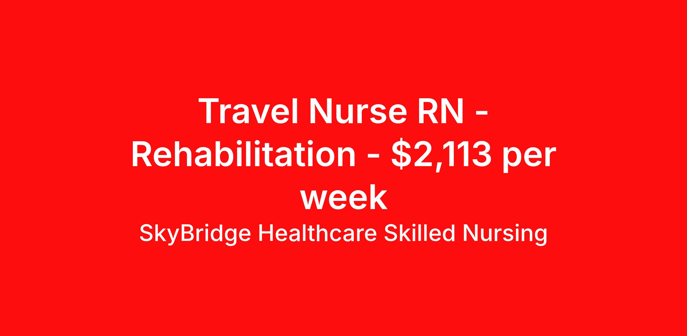 SkyBridge Healthcare Skilled Nursing is seeking a travel nurse RN Rehabilitation for a travel nursing job in Lincoln, Nebraska. Job Description & Requirements Specialty: Rehabilitation Discipline: RN Duration: 13 weeks 36 hours per week Shift: 12 hours, nights Employment Type: Travel SkyBridge Healthcare Skilled Nursing Job ID SBHLTC030974. Pay package is based on 12 hour shifts and 36 hours per week (subject to confirmation) with tax-free stipend amount to be determined. About SkyBridge Healthcare Skilled Nursing It is our mission at SkyBridge Healthcare to connect professionals within the healthcare community through both genuine relationships and quality work. We understand the demands of healthcare positions which is why we want to give back to Healthcare Professionals who give so much to their communities. We’re partnered with some of the greatest facilities in the nation, therefore we ensure our Healthcare Professionals will receive top-notch treatment every step of the way. Our specialties include Nursing, Allied Health, Laboratory, Therapy, Healthcare Information Technology, and Revenue Cycle. Follow us on social media to stay in the know of our latest company updates and job postings. Benefits Holiday Pay 401k retirement plan Life insurance Mileage reimbursement Guaranteed Hours Referral bonus License and certification reimbursement Employee assistance programs Dental benefits Weekly pay Medical benefits Vision benefits