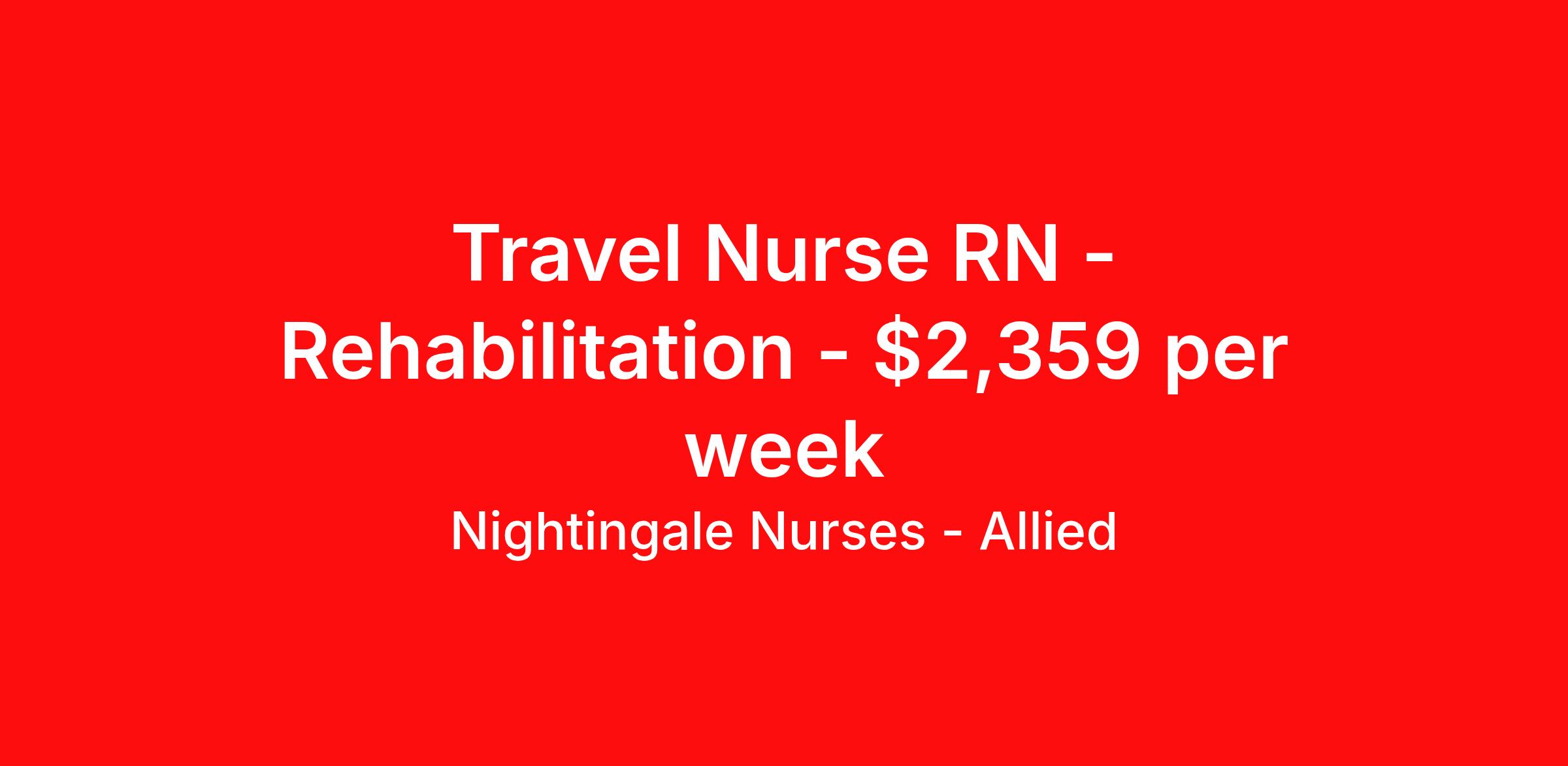 Nightingale Nurses - Allied is seeking a travel nurse RN Rehabilitation for a travel nursing job in Peoria, Illinois. Job Description & Requirements Specialty: Rehabilitation Discipline: RN Start Date: 04/13/2026 Duration: 13 weeks 36 hours per week Shift: 12 hours, nights Employment Type: Travel