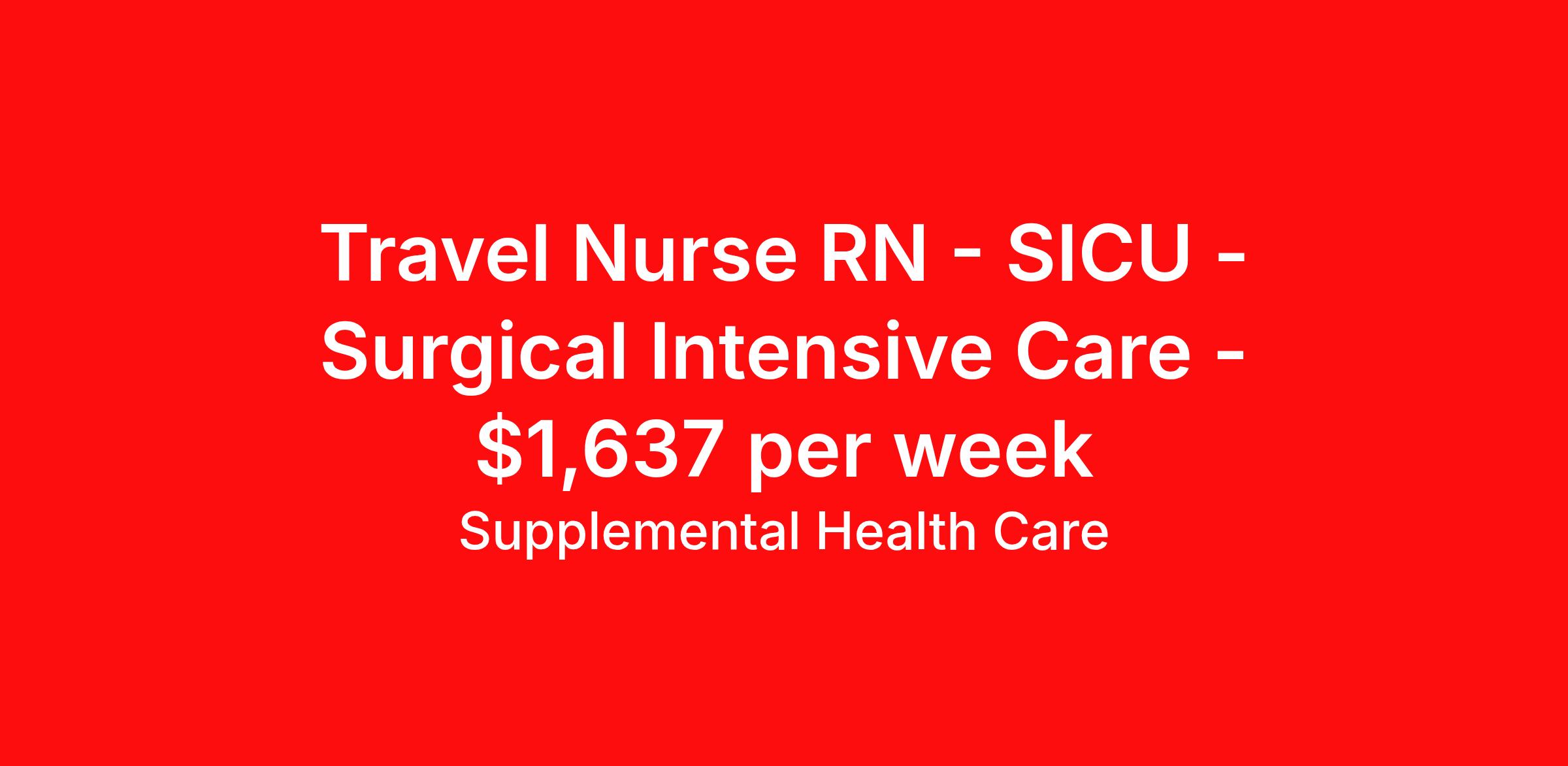 Travel Nurse RN - SICU - Surgical Intensive Care - $1,637 per week