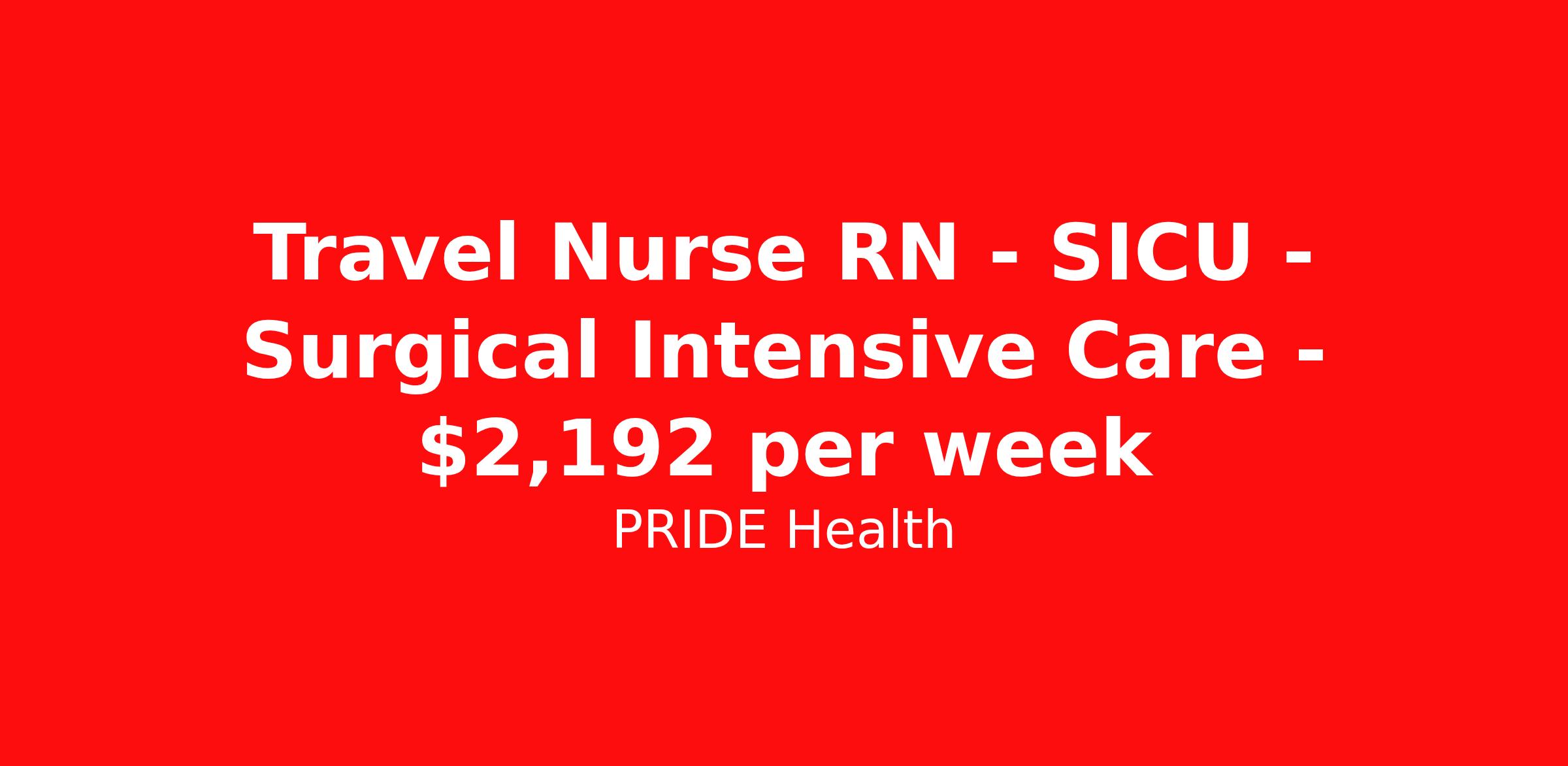 Travel Nurse RN - SICU - Surgical Intensive Care - $2,192 per week