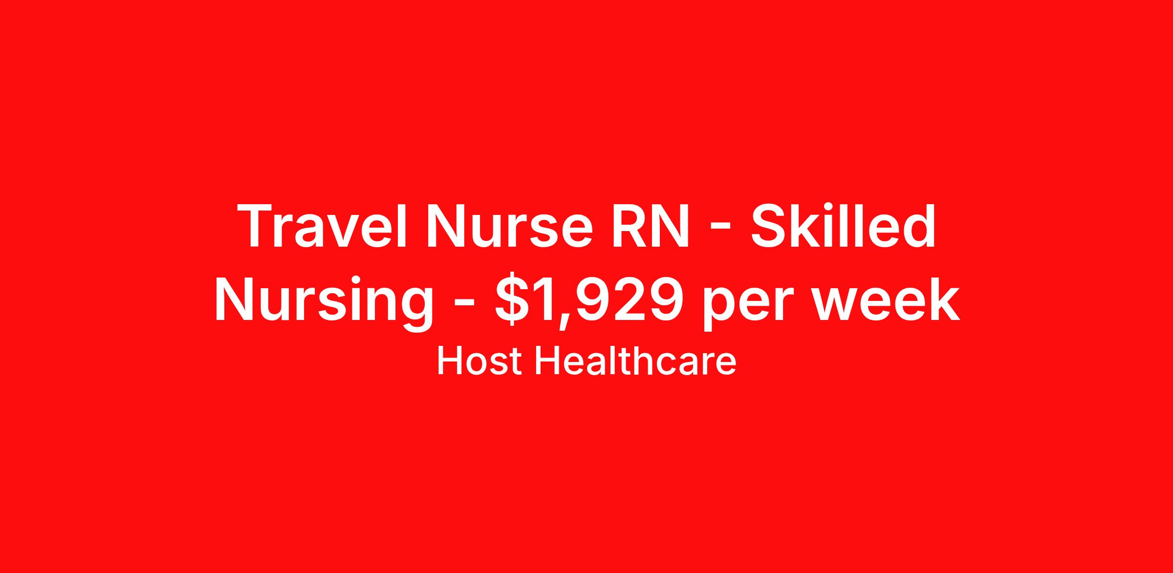Host Healthcare is seeking a travel nurse RN Skilled Nursing for a travel nursing job in Philadelphia, Pennsylvania. Job Description & Requirements Specialty: Skilled Nursing Discipline: RN Start Date: 04/06/2026 Duration: 13 weeks 36 hours per week Shift: 12 hours, days Employment Type: Travel Host Healthcare Job ID a1fVX000002wfT3YAI. Pay package is based on 12 hour shifts and 36 hours per week (subject to confirmation) with tax-free stipend amount to be determined. Posted job title: RN - Occupational Health About Host Healthcare At Host Healthcare, we provide a truly comfortable experience as you explore your travel nursing, therapy, or allied career. We make your travel healthcare journey easy by taking care of all the details, so you don’t have to. We are on a mission to help others live better and we do this by helping the healers of the world be as comfortable as possible. With access to tens of thousands of travel nursing, therapy, and allied jobs in all 50 states, our responsive and friendly recruiters find your dream position based on what’s important to you. During your assignment, get access to premium benefits, including Day 1 medical that continues up to 30 days between assignments, 401K matching, travel reimbursements, dedicated housing support, and more. We also offer 24/7 support from our team and access to our on-staff clinicians so you can feel comfortable and confident throughout your entire assignment. Travel comfortably with Host Healthcare. Benefits Referral bonus School loan reimbursement Vision benefits Wellness and fitness programs Company provided housing options License and certification reimbursement Life insurance Medical benefits Mileage reimbursement Pet insurance Discount program Employee assistance programs Guaranteed Hours Health savings account Holiday Pay 401k retirement plan Continuing Education Dental benefits