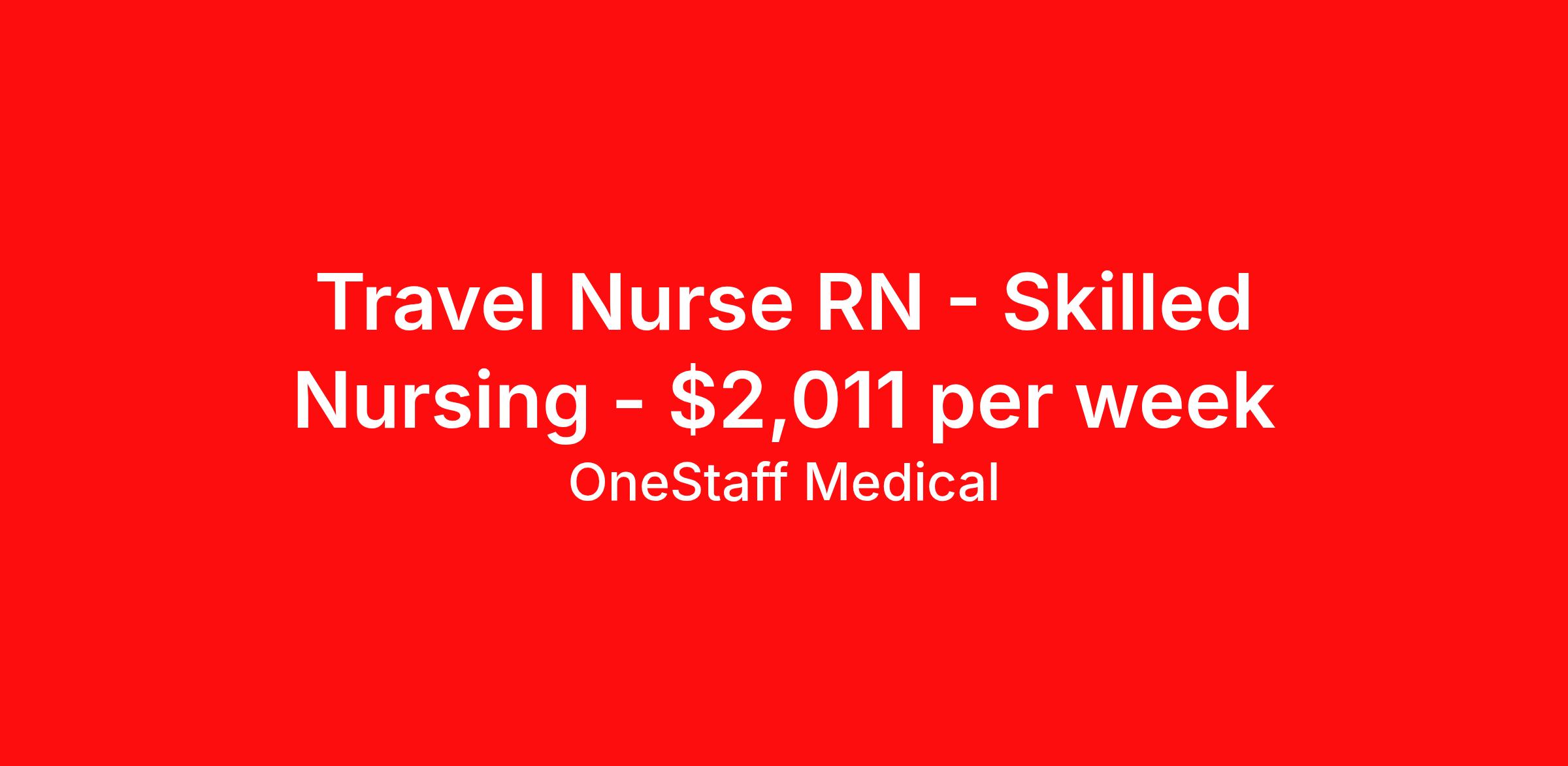 OneStaff Medical is seeking a travel nurse RN Skilled Nursing for a travel nursing job in Columbia Falls, Montana. Job Description & Requirements Specialty: Skilled Nursing Discipline: RN Start Date: 04/06/2026 Duration: 13 weeks 36 hours per week Shift: 12 hours, evenings, nights, flexible, rotating Employment Type: Travel 2 open positions for night/evening shift. mainly 1800-0630 with occasional 1400-2230. Overtime opportunities. 13- weeks Looking for a nurse who is willing to work any shift but mainly the evening shift 1400-2230 and night shift 1830-0630 minimum 3 years of experience required. Long-term care experience or at least with dementia care. Facility is open to a nurse who only wants to work weekend block schedule, 12-hours. About OneStaff Medical You deserve a partner that is working for you. Be bold and let us do just that. We’ll take care of you while you are away from your own “home base” in every way we can, and ideally do more than you expect. Your team at OneStaff is dedicated to finding the perfect assignments (for you), negotiate the best rates and handles any issues that may arise while you are on assignment. We take great pride in building relationships with our traveling professionals and we enjoy hearing about your experiences. Whatever the need, we are here to help along the journey. We understand you are the heart and soul of what we are. Whether it is housing, payroll, travel, benefits, or just a friendly voice to talk to, we are there every step of the way. The company you choose is the most important decision you will make in your traveling career. We get that, so we’re committed to you 24 hours-a-day, 7 days-a-week. We’re your “one” solution in travel assignments and here to assist whether helping with accelerating your trajectory towards your career goals or meeting your travel requirements. Benefits Weekly pay Holiday Pay Guaranteed Hours 401k retirement plan Pet insurance Company provided housing options Sick pay Wellness and fitness programs Referral bonus Medical benefits Dental benefits Vision benefits