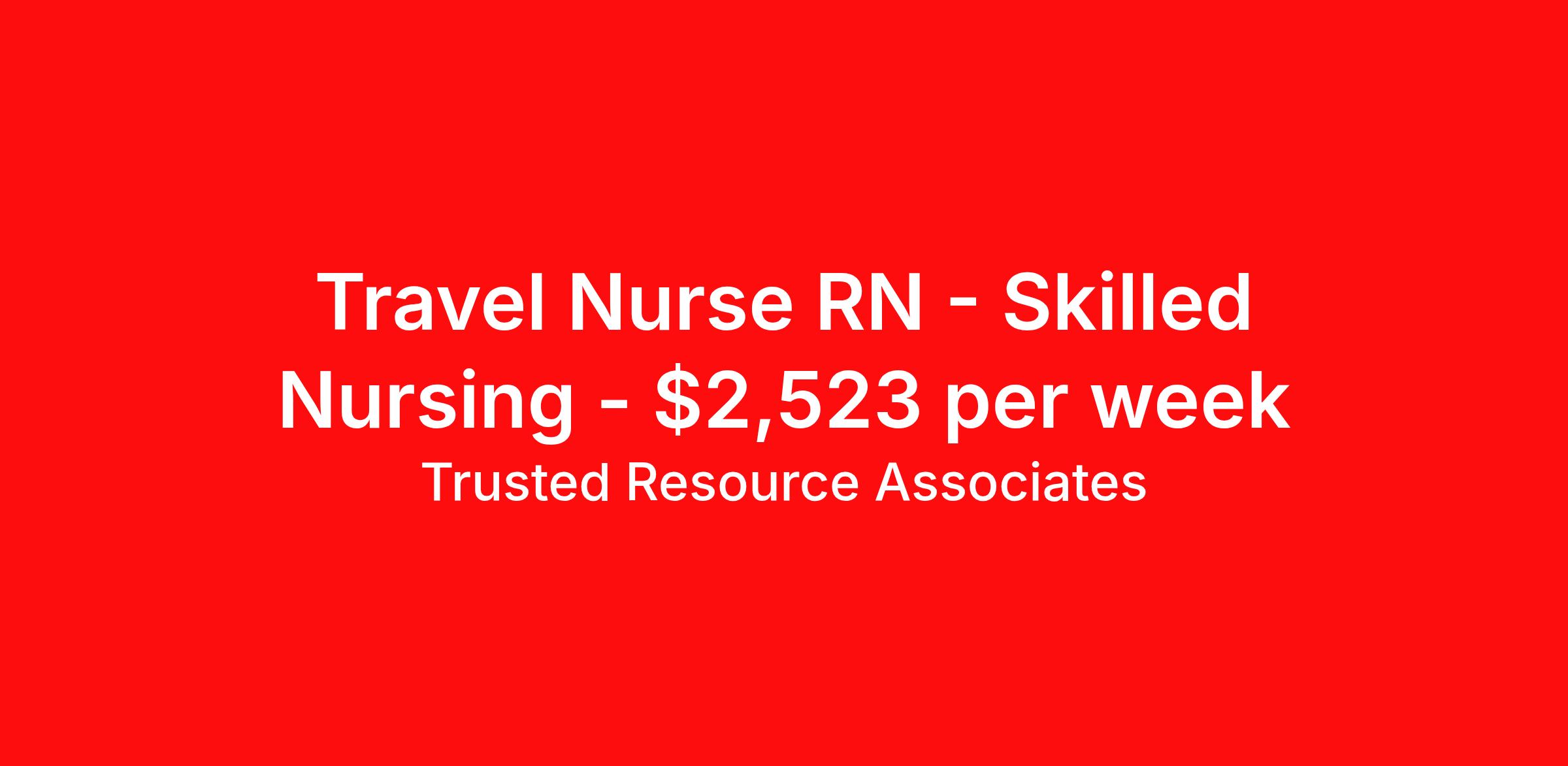 Travel Nurse RN - Skilled Nursing - $2,523 per week