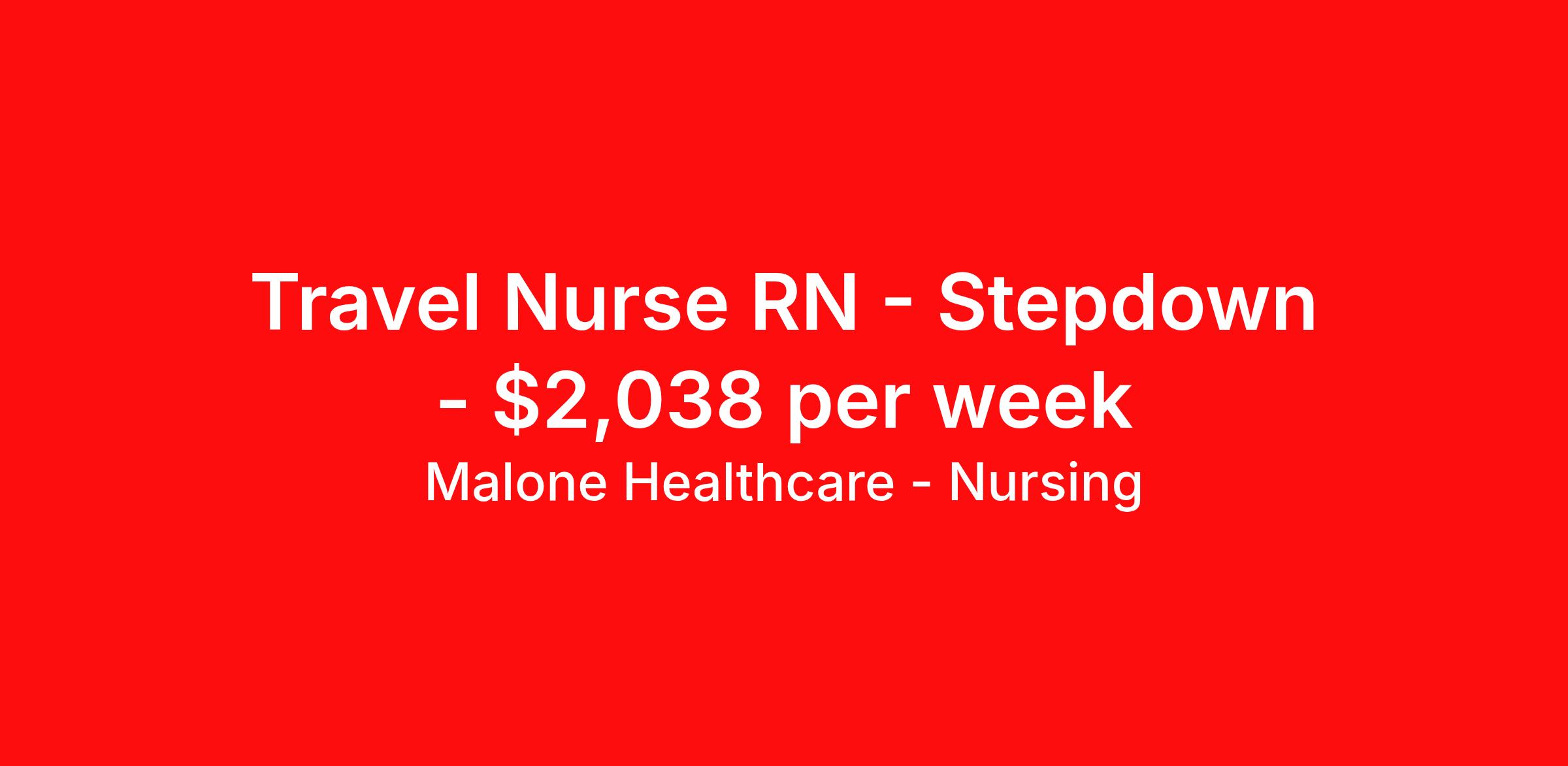 Malone Healthcare - Nursing is seeking a travel nurse RN Stepdown for a travel nursing job in Burlington, North Carolina. Job Description & Requirements Specialty: Stepdown Discipline: RN Start Date: 03/30/2026 Duration: 13 weeks 36 hours per week Shift: 12 hours, days Employment Type: Travel About Malone Healthcare - Nursing With a commitment to providing a higher standard of service and experience in patient care, Malone Healthcare places expert nurses and allied health professionals in rewarding careers throughout the United States. As a leading healthcare staffing agency, Malone’s focus on compliance and integrity translates to a seamless experience for our team members and partner facilities. When you work with Malone Healthcare, you can rely on over 50 years of proven experience placing exceptional professionals in quality healthcare settings. Benefits Weekly pay Holiday Pay Guaranteed Hours Continuing Education 401k retirement plan Pet insurance Referral bonus Medical benefits Dental benefits Vision benefits License and certification reimbursement Life insurance