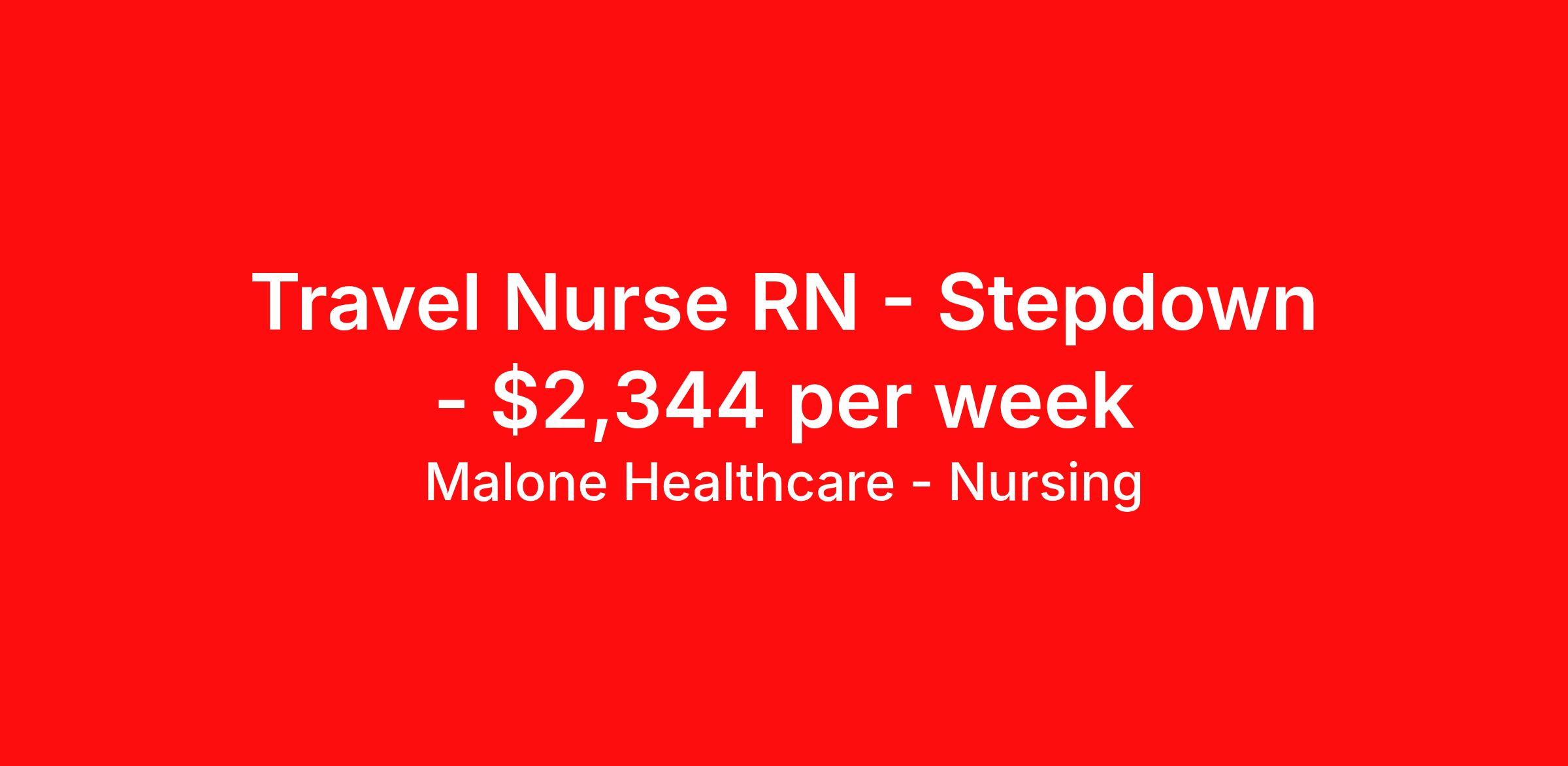 Malone Healthcare - Nursing is seeking a travel nurse RN Stepdown for a travel nursing job in Council Bluffs, Iowa. Job Description & Requirements Specialty: Stepdown Discipline: RN Start Date: 04/13/2026 Duration: 13 weeks 36 hours per week Shift: 12 hours, days Employment Type: Travel About Malone Healthcare - Nursing With a commitment to providing a higher standard of service and experience in patient care, Malone Healthcare places expert nurses and allied health professionals in rewarding careers throughout the United States. As a leading healthcare staffing agency, Malone’s focus on compliance and integrity translates to a seamless experience for our team members and partner facilities. When you work with Malone Healthcare, you can rely on over 50 years of proven experience placing exceptional professionals in quality healthcare settings. Benefits Weekly pay Holiday Pay Guaranteed Hours Continuing Education 401k retirement plan Pet insurance Referral bonus Medical benefits Dental benefits Vision benefits License and certification reimbursement Life insurance