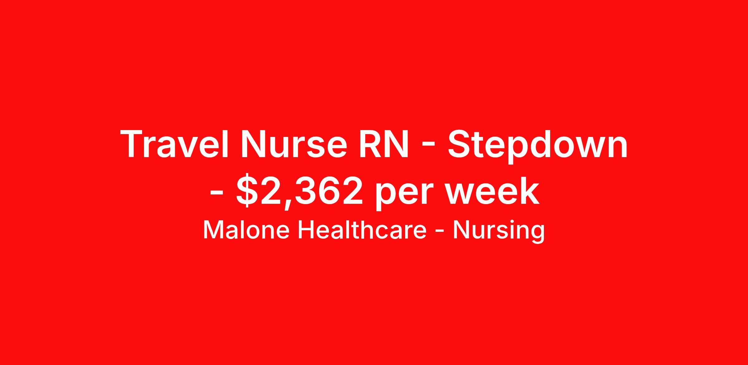 Malone Healthcare - Nursing is seeking a travel nurse RN Stepdown for a travel nursing job in Rock Island, Illinois. Job Description & Requirements Specialty: Stepdown Discipline: RN Start Date: 04/06/2026 Duration: 13 weeks 36 hours per week Shift: 12 hours, nights Employment Type: Travel About Malone Healthcare - Nursing With a commitment to providing a higher standard of service and experience in patient care, Malone Healthcare places expert nurses and allied health professionals in rewarding careers throughout the United States. As a leading healthcare staffing agency, Malone’s focus on compliance and integrity translates to a seamless experience for our team members and partner facilities. When you work with Malone Healthcare, you can rely on over 50 years of proven experience placing exceptional professionals in quality healthcare settings. Benefits Weekly pay Holiday Pay Guaranteed Hours Continuing Education 401k retirement plan Pet insurance Referral bonus Medical benefits Dental benefits Vision benefits License and certification reimbursement Life insurance