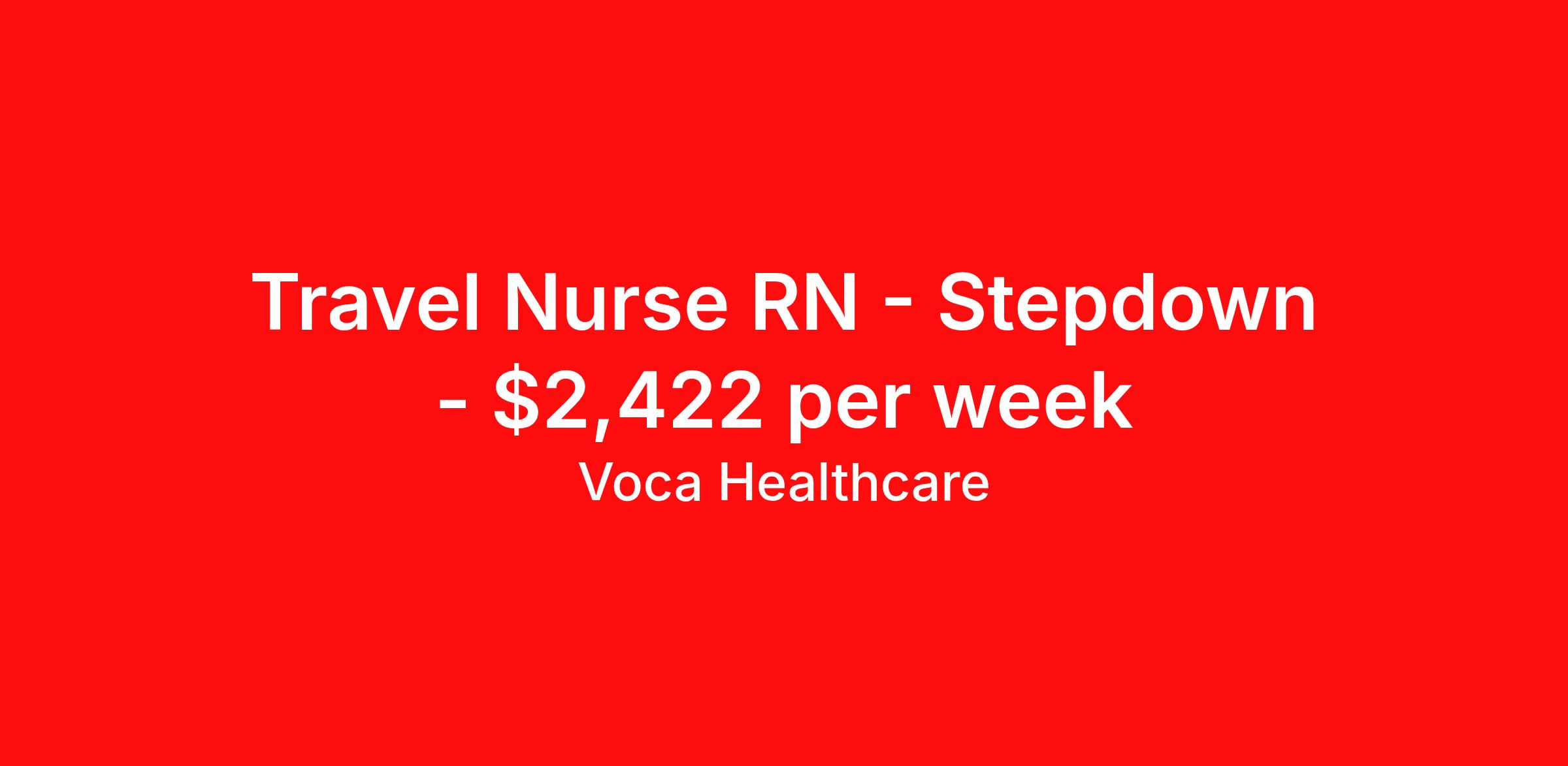 Voca Healthcare is seeking a travel nurse RN Stepdown for a travel nursing job in Omaha, Nebraska. Job Description & Requirements Specialty: Stepdown Discipline: RN Start Date: 04/27/2026 Duration: 13 weeks 36 hours per week Shift: 12 hours, nights Employment Type: Travel Shift: 12H Nights BLS, ACLS, NIHSS Job ID 17972766 Shift: 12H Nights BLS, ACLS, NIHSS Job ID 17972766 About Voca Healthcare As a Voca Traveler, you will gain new clinical skills, visit amazing places and meet awesome healthcare professionals. As a travel health professional, your experience and dedication to patient care is in high demand throughout the United States. Whether you are a veteran traveler looking for your next opportunity, or you are looking to travel for the first time, Voca is here to support you. Voca’s experienced and dedicated travel team works in concert with you every step of the way. Our long-standing partnerships with some of the most respected and recognized healthcare organizations in the country allow us to identify career opportunities to help you increase your knowledge and experience while working with some of the best physicians and healthcare professionals in the world. At Voca, we strongly believe a better career results in a happier you. We are here to help you find a position that is professionally and personally rewarding. Benefits Holiday Pay 401k retirement plan Medical benefits Dental benefits Vision benefits Guaranteed Hours