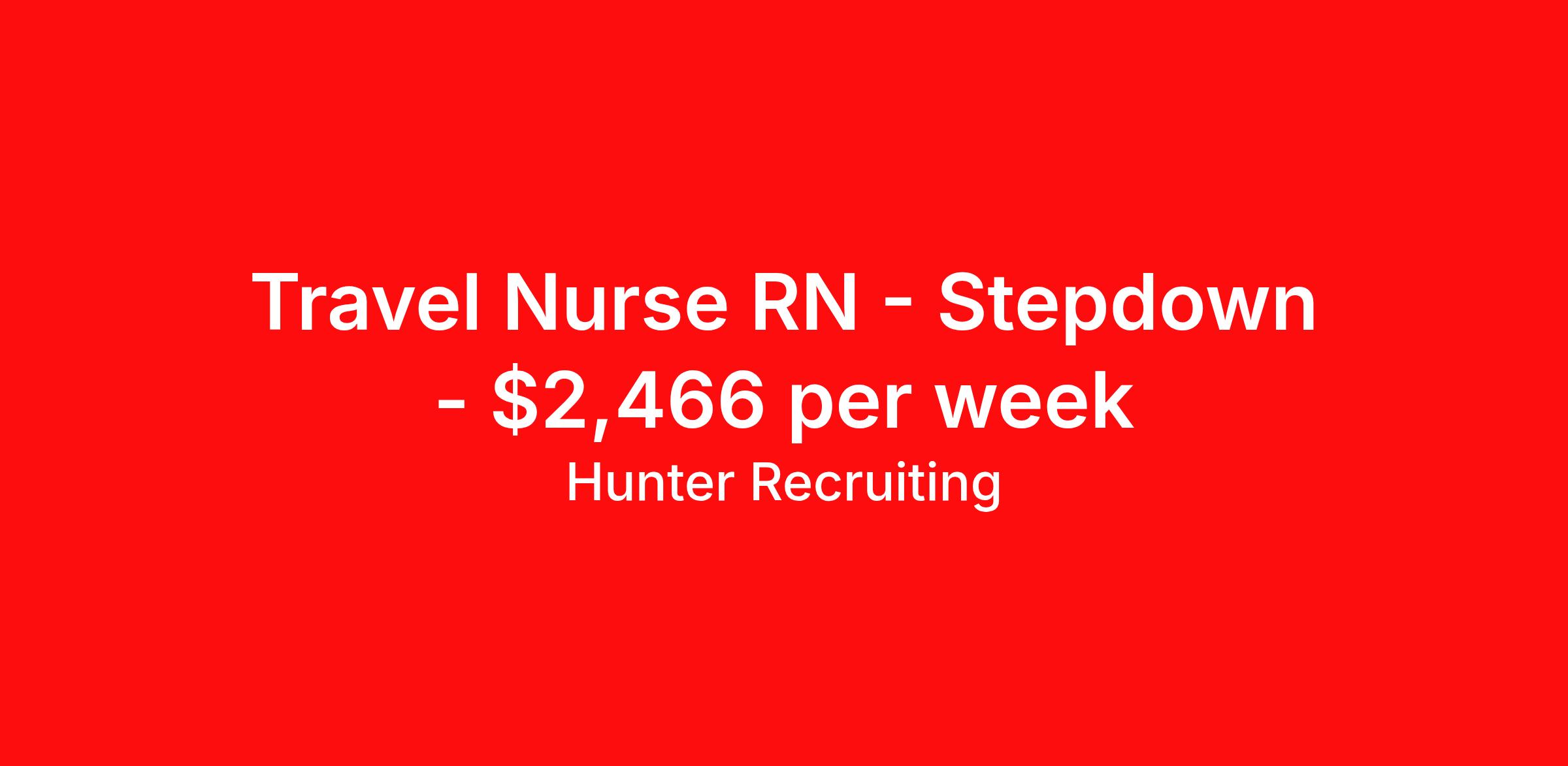 Hunter Recruiting is seeking a travel nurse RN Stepdown for a travel nursing job in Cleveland, Ohio. Job Description & Requirements Specialty: Stepdown Discipline: RN Start Date: 04/21/2026 Duration: 13 weeks 36 hours per week Shift: 12 hours, nights Employment Type: Travel Stepdown Neuro RN - Cleveland, OH - 3x12 Nights Must have 18 months of perm experience in specialty applying for prior to travel assignments. Must have 18 months of recent Neuro Stepdown experience - travel experience will suffice. PCU/Progressive care experience preferred but not required. AHA or American Red Cross BLS, ACLS & NIHSS cert required. Must have perm Ohio license or compact state license in hand. Stepdown Neuro RN - Cleveland, OH - 3x12 Nights Must have 18 months of perm experience in specialty applying for prior to travel assignments. Must have 18 months of recent Neuro Stepdown experience - travel experience will suffice. PCU/Progressive care experience preferred but not required. AHA or American Red Cross BLS, ACLS & NIHSS cert required. Must have perm Ohio license or compact state license in hand. About Hunter Recruiting Founded in 2006, Hunter Recruiting is a national technical staffing leader. Hunter helps qualified job seekers find employers throughout the United States. Hunter Recruiting provides job placement for professionals in technical fields and executive positions with Fortune 1000 employers. Benefits Medical benefits Dental benefits Vision benefits