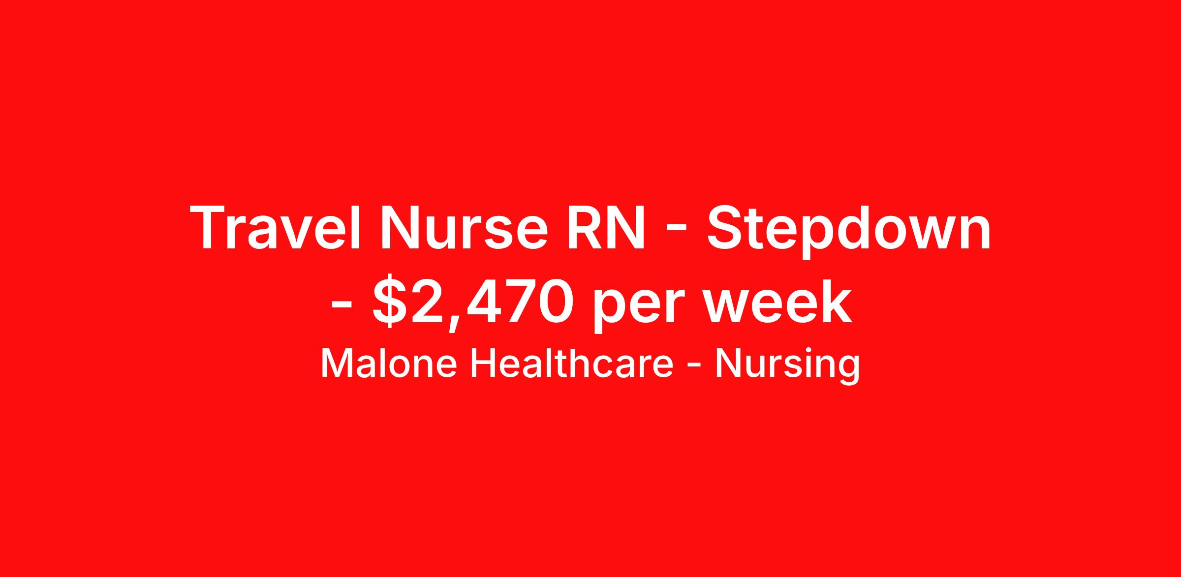 Malone Healthcare - Nursing is seeking a travel nurse RN Stepdown for a travel nursing job in Burlington, Vermont. Job Description & Requirements Specialty: Stepdown Discipline: RN Start Date: 04/15/2026 Duration: 13 weeks 36 hours per week Shift: 12 hours, days Employment Type: Travel PCU/Tele RN Orientation: Bi-weekly on Mondays Next Orientation Date: 3/9 Schedule: Monday–Sunday | No block schedules Weekend Requirement: Every other weekend Pay & Radius Travel Rate: $100/hr (51–100 miles) Local Rate: $105/hr (≤50 miles) Distance measured straight-line, not driving distance Requirements Minimum 2 years PCU/Tele experience Cardiology experience required, including post-cath, STEMI, and structural heart patients Prior travel experience preferred EPIC experience within the last 2 years – REQUIRED (non-negotiable) Certifications required: BLS, ACLS, NIHSS NIHSS must be completed prior to start Must be flexible with scheduling Floating required (travelers float first): To Med/Surg or other Progressive Care units within Central Pool PCU Additional Notes IVs to offer Full work history required for submission (bed count, EMR, facility type, etc.) All employment gaps over 30 days must be explained Public transportation not accessible Reliable personal or rental vehicle required Vehicles must have all-season or snow tires (Nov–April) About Malone Healthcare - Nursing With a commitment to providing a higher standard of service and experience in patient care, Malone Healthcare places expert nurses and allied health professionals in rewarding careers throughout the United States. As a leading healthcare staffing agency, Malone’s focus on compliance and integrity translates to a seamless experience for our team members and partner facilities. When you work with Malone Healthcare, you can rely on over 50 years of proven experience placing exceptional professionals in quality healthcare settings. Benefits Weekly pay Holiday Pay Guaranteed Hours Continuing Education 401k retirement plan Pet insurance Referral bonus Medical benefits Dental benefits Vision benefits License and certification reimbursement Life insurance