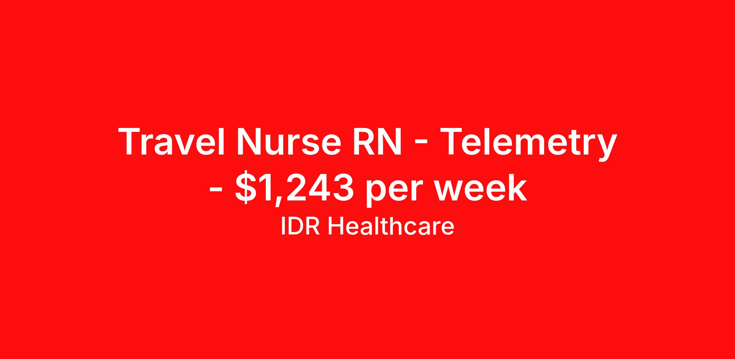 IDR Healthcare is seeking a travel nurse RN Telemetry for a travel nursing job in Lodi, California. Job Description & Requirements Specialty: Telemetry Discipline: RN Start Date: 03/30/2026 Duration: 13 weeks 36 hours per week Shift: 12 hours, nights Employment Type: Travel IDR Healthcare is an awarding winning staffing firm that believes it is a privilege and awesome responsibility to serve those who selflessly care for others. Our mission is to empower healthcare professionals to achieve their fullest potential both personally and professionally while they create positive change within the healthcare community. We exercise true grit, tenacity, and authenticity while embracing and ownership mindset to go above and beyond providing healthcare professionals a world class experience. We are employee owned and our travelers and clinicians earn shares/equity by just completing multiple assignments! We have been named SIA’s Fastest Growing Staffing Firms and have won ClearlyRated® Best of Staffing for 11 consecutive years! This cements our commitment to clinician satisfaction earning top net promoter scores putting us in the top 2% of agencies in North America! TravelFarWithIDR and see what an extraordinary experience is all about! Benefits 2024 World Staffing Best Staffing Firms to Work For! ESOP (Equity) Healthcare Benefits for up to 30 days Between Assignments Comprehensive Health Insurance Dental and Vision Insurance Sign-On, Completion, & Referral Bonus Programs License and Certification Reimbursement Weekly Pay and Competitive Compensation Large Network of Clients and Job Opportunities 401k retirement plan Exclusive Assignments IDR Job ID 494750. Pay package is based on 12 hour shifts and 36 hours per week (subject to confirmation) with tax-free stipend amount to be determined. About IDR Healthcare IDR Healthcare is an awarding winning staffing firm that believes it is a privilege and awesome responsibility to serve those who selflessly care for others. Our mission is to empower healthcare professionals to achieve their fullest potential both personally and professionally while they create positive change within the healthcare community. We exercise true grit, tenacity, and authenticity while embracing and ownership mindset to go above and beyond providing healthcare professionals a world class experience. We are employee owned and our travelers and clinicians earn shares/equity by just completing multiple assignments! We have been named SIA’s Fastest Growing Staffing Firms and have won ClearlyRated® Best of Staffing for 11 consecutive years! This cements our commitment to clinician satisfaction earning top net promoter scores putting us in the top 2% of agencies in North America! Help us give back! For every booked assignment, proceeds are donated to St. Jude and Feeding America! Last year we raised over $18,000 for St. Jude and provided over 49,000 meals for children in need. TravelFarWithIDR and see what it is all about! Benefits Weekly pay 401k retirement plan Referral bonus Medical benefits Dental benefits License and certification reimbursement Vision benefits