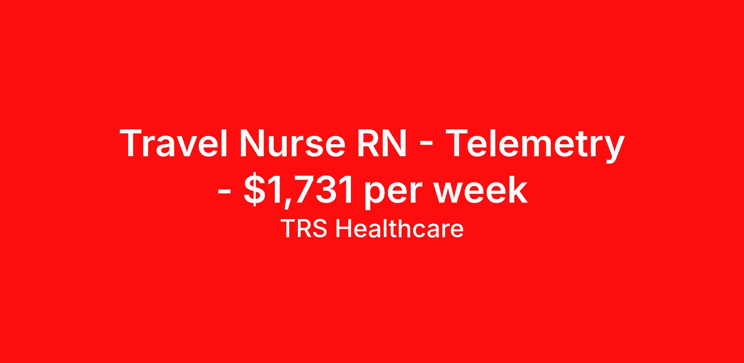 TRS Healthcare is seeking a travel nurse RN Telemetry for a travel nursing job in Highlands, North Carolina. Job Description & Requirements Specialty: Telemetry Discipline: RN Start Date: ASAP Duration: 13 weeks 36 hours per week Shift: 12 hours, days Employment Type: Travel TRS Healthcare Job ID 1431282. Pay package is based on 12 hour shifts and 36 hours per week (subject to confirmation) with tax-free stipend amount to be determined. Posted job title: Telemetry Unit Registered Nurse About TRS Healthcare TRS Healthcare has been a leader in the healthcare staffing industry for over 25 years, providing exceptional career opportunities for travel nurses and allied health professionals. An RN-founded, woman-owned company, TRS Healthcare has team members in all 50 states. We recruit and support registered nurses, licensed practical nurses, surgical technicians, respiratory therapists, imaging technologists, laboratory specialists, and other experienced nursing and allied healthcare professionals. We staff hundreds of healthcare facilities across the U.S. in urban, rural, and underserved areas, including multi-state hospital systems, critical access hospitals, rural community hospitals, long-term care facilities, trauma centers, standalone clinics, and more. Learn more about TRS Healthcare at trshealthcare.com .