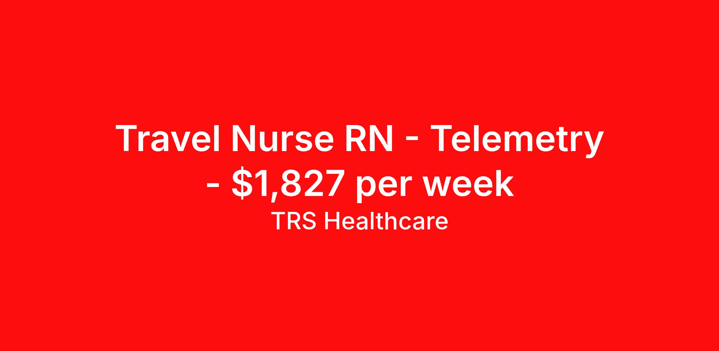 TRS Healthcare is seeking a travel nurse RN Telemetry for a travel nursing job in Alabaster, Alabama. Job Description & Requirements Specialty: Telemetry Discipline: RN Start Date: 04/20/2026 Duration: 13 weeks 36 hours per week Shift: 12 hours, nights Employment Type: Travel TRS Healthcare Job ID 1447870. Pay package is based on 12 hour shifts and 36 hours per week (subject to confirmation) with tax-free stipend amount to be determined. Posted job title: Telemetry Unit Registered Nurse About TRS Healthcare TRS Healthcare has been a leader in the healthcare staffing industry for over 25 years, providing exceptional career opportunities for travel nurses and allied health professionals. An RN-founded, woman-owned company, TRS Healthcare has team members in all 50 states. We recruit and support registered nurses, licensed practical nurses, surgical technicians, respiratory therapists, imaging technologists, laboratory specialists, and other experienced nursing and allied healthcare professionals. We staff hundreds of healthcare facilities across the U.S. in urban, rural, and underserved areas, including multi-state hospital systems, critical access hospitals, rural community hospitals, long-term care facilities, trauma centers, standalone clinics, and more. Learn more about TRS Healthcare at trshealthcare.com .