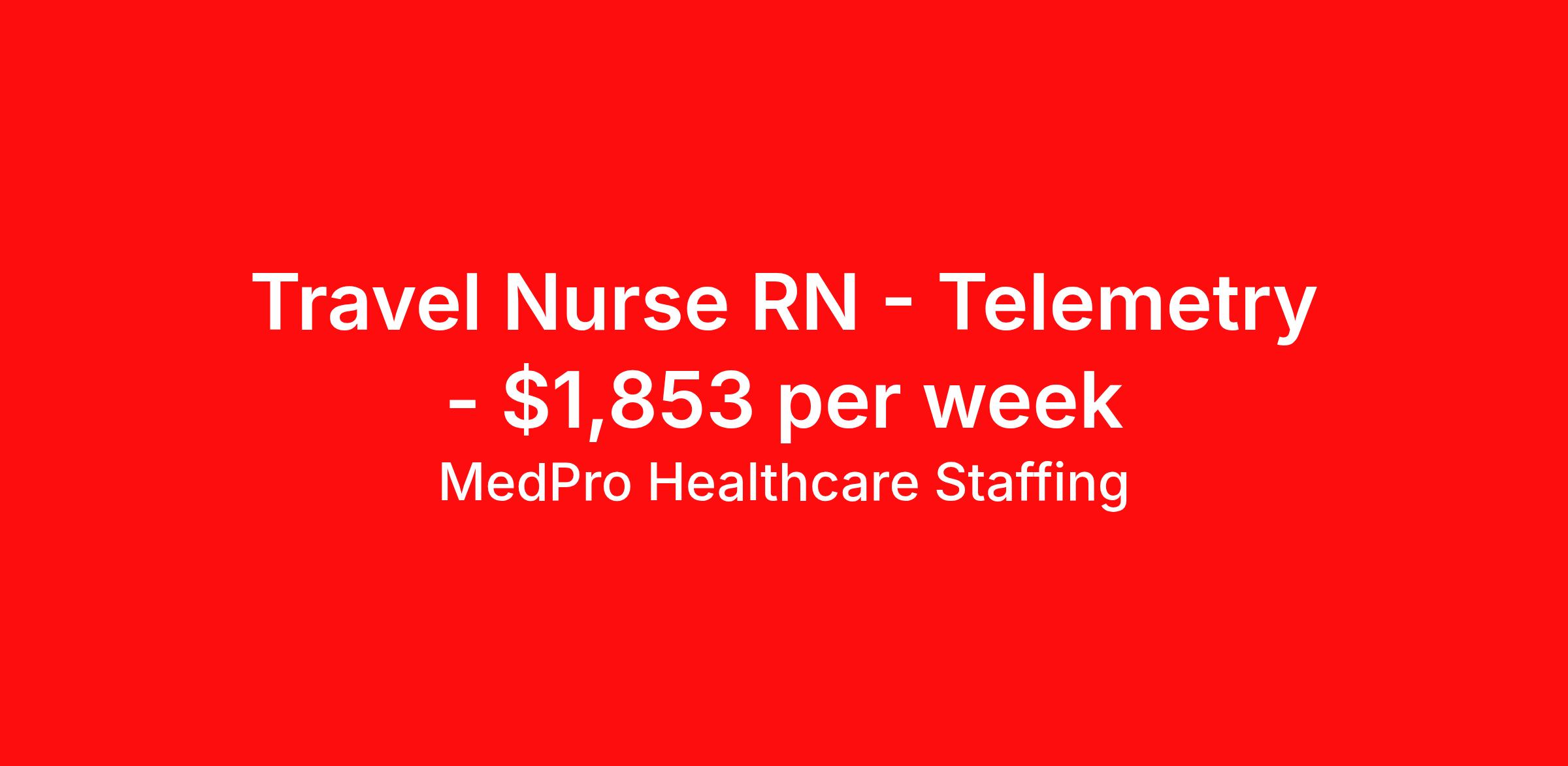 MedPro Healthcare Staffing is seeking a travel nurse RN Telemetry for a travel nursing job in Rock Hill, South Carolina. Job Description & Requirements Specialty: Telemetry Discipline: RN Start Date: 04/06/2026 Duration: 13 weeks 36 hours per week Shift: 12 hours, days Employment Type: Travel MedPro Healthcare Staffing , a Joint Commission-certified staffing agency, is seeking a quality Telemetry registered nurse for a travel assignment with one of our top healthcare clients. Requirements Active RN License Degree from accredited nursing program BLS & ACLS Certifications Eighteen months of recent experience in an Acute Care Telemetry setting Other requirements to be determined by our client facility Benefits Weekly pay and direct deposit Full coverage of all credentialing fees Private housing or housing allowance Group Health insurance for you and your family Company-paid life and disability insurance Travel reimbursement 401(k) matching Unlimited Referral Bonuses up to $1,000 Duties Responsibilities As part of the telemetry unit, Telemetry Nurses (RN) provide care by connecting patients to machines that measure heart rate, blood pressure, breathing rate, as well as blood-oxygen levels and electrocardiogram information. These machines then send data to computer screens for nurses to monitor. Telemetry Nurses read and interpret the data to better determine patient care. Provide care for patients by comfortably connecting them to machines that measure blood pressure, heart rate, breathing rate, blood-oxygen level, and electrocardiogram information. Monitor and interpret data to assess any potential health problems and needs. Develop nursing care plans and maintaining accurate medical records. About Agency MedPro Healthcare Staffing is a Joint Commission certified provider of contract staffing services. Since 1983, we have placed nursing and allied travelers in top healthcare facilities nationwide. Join us today for your very own MedPro Experience®. If qualified and interested, please call for immediate consideration. MedPro Staffing is an Equal Opportunity Employer. All applicants will be considered for employment without attention to race, color, religion, national origin, age, sex, disability, marital status or veteran status. Key Words: Telemetry Nurse, RN-Tele, Telemetry Nursing positions, Travel Nurse, Contract Nurse, Agency Nurse, EKG, Tele, Telemetry Contracts, Registered Nurse, Telemetry Nurse, Tele Nurse, RN, Registered Nurse, Telemetry Nurse, RN-Tele, Travel Nursing *Weekly payment estimates are intended for informational purposes only and include a gross estimate of hourly wages and reimbursements for meal, incidental, and housing expenses. Your recruiter will confirm your eligibility and provide additional details. MedPro Job ID a0Fcx00000I1GefEAF. Pay package is based on 12 hour shifts and 36 hours per week (subject to confirmation) with tax-free stipend amount to be determined. Posted job title: Telemetry Registered Nurse Nursing: Telemetry. About MedPro Healthcare Staffing At MedPro Healthcare Staffing , we believe no one cares more for caregivers than we do. Our mission is simple: you focus on your patients, and we’ll take care of the rest. As a Joint Commission-certified leader in temporary and contract healthcare staffing since 1983, MedPro has proudly connected nursing and allied travelers with top healthcare facilities across the nation. With thousands of job opportunities available nationwide, we make it easy to find assignments that align with your goals and lifestyle. Our on-staff clinical support team—alongside a compassionate group of experienced recruiters—provides hands-on guidance every step of the way. From Day 1 medical benefits and a 401(k) plan to personalized career support, we’re committed to ensuring every professional we serve feels valued, cared for, and empowered to succeed. Guided by a CEO who is a Registered Nurse, MedPro is built on a foundation of clinical insight and genuine compassion for the caregiving community. Through The MedPro Experience® , we deliver travel assignments that are rewarding, memorable, and designed to help you DREAM big, EXPLORE often, and ACHIEVE greatness. Benefits Day 1 medical, dental, and vision benefits for you and your family Weekly pay and direct deposit Unlimited Referral Bonuses starting at $500 On Staff Clinical Support Team Access to nationwide travel assignments MPX Mobile app -24/7 real-time access to jobs, credentials, assignment details, and more Full coverage of all credentialing fees Private housing or housing allowance Tax Free Per Diems, Housing Stipends and Travel Reimbursements Company-paid life and disability insurance Travel reimbursement 401(k) matching Benefits Weekly pay Referral bonus Employee assistance programs