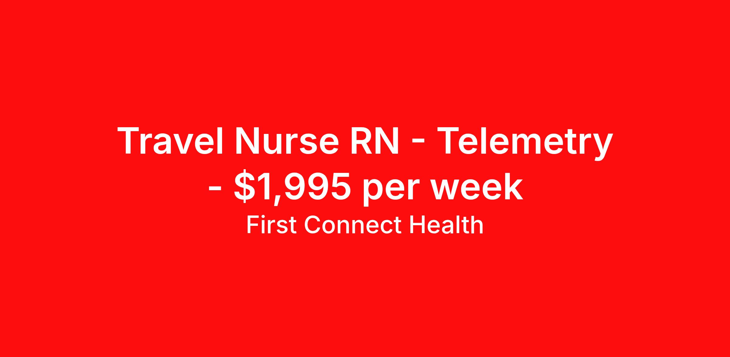 First Connect Health is seeking a travel nurse RN Telemetry for a travel nursing job in Lima, Ohio. Job Description & Requirements Specialty: Telemetry Discipline: RN Start Date: 04/30/2026 Duration: 13 weeks 36 hours per week Shift: 12 hours, nights Employment Type: Travel ❤️ Registered Nurse (RN) – Telemetry Location: Lima ⏰ 36 Hours Guaranteed $1,994.80 Gross Weekly $20.80/hr $1,246 Per Diem ✅ Must Have: ✔️ 2 years Telemetry experience ✔️ Post-op open-heart experience ✔️ Chest tube & cardiac drain management ✔️ Strong cardiac rhythm interpretation skills ✔️ Temporary pacer & NIV experience ✔️ BLS & ACLS (AHA) ✔️ Active OH or Compact RN License ✔️ Must float within skill set Interested candidates are encouraged to apply for their next assignment today. 65468 About First Connect Health At First Connect Health , we take pride in being a Joint Commission–certified healthcare staffing agency , headquartered in Newark, New Jersey. This prestigious certification is more than just a seal — it's a reflection of our commitment to excellence, safety, and quality in everything we do. By meeting the rigorous standards set by The Joint Commission, one of the most respected accrediting bodies in healthcare, we've demonstrated that our processes, compliance, and patient care standards are aligned with the highest levels of quality in the industry. But our dedication goes beyond certifications. Nurses choose First Connect Health because: ✅ Trust and Transparency: We foster honest communication, timely updates, and full transparency throughout your placement journey. ✅ Best Pay & Benefits: We offer industry-leading compensation packages, along with benefits that support your career goals. ✅ Flexibility & Choice: Whether you're seeking short-term assignments, long-term contracts, or local opportunities, we provide the flexibility to suit your preferences. ✅ Personalized Support: Our recruiters take the time to understand your needs, guiding you with care, respect, and responsiveness at every step. When you work with First Connect Health, you're not just another number — you're a valued professional. Join a team that’s focused on your success, your well-being, and your future in healthcare. Benefits Medical benefits Sick pay 401k retirement plan Weekly pay Referral bonus