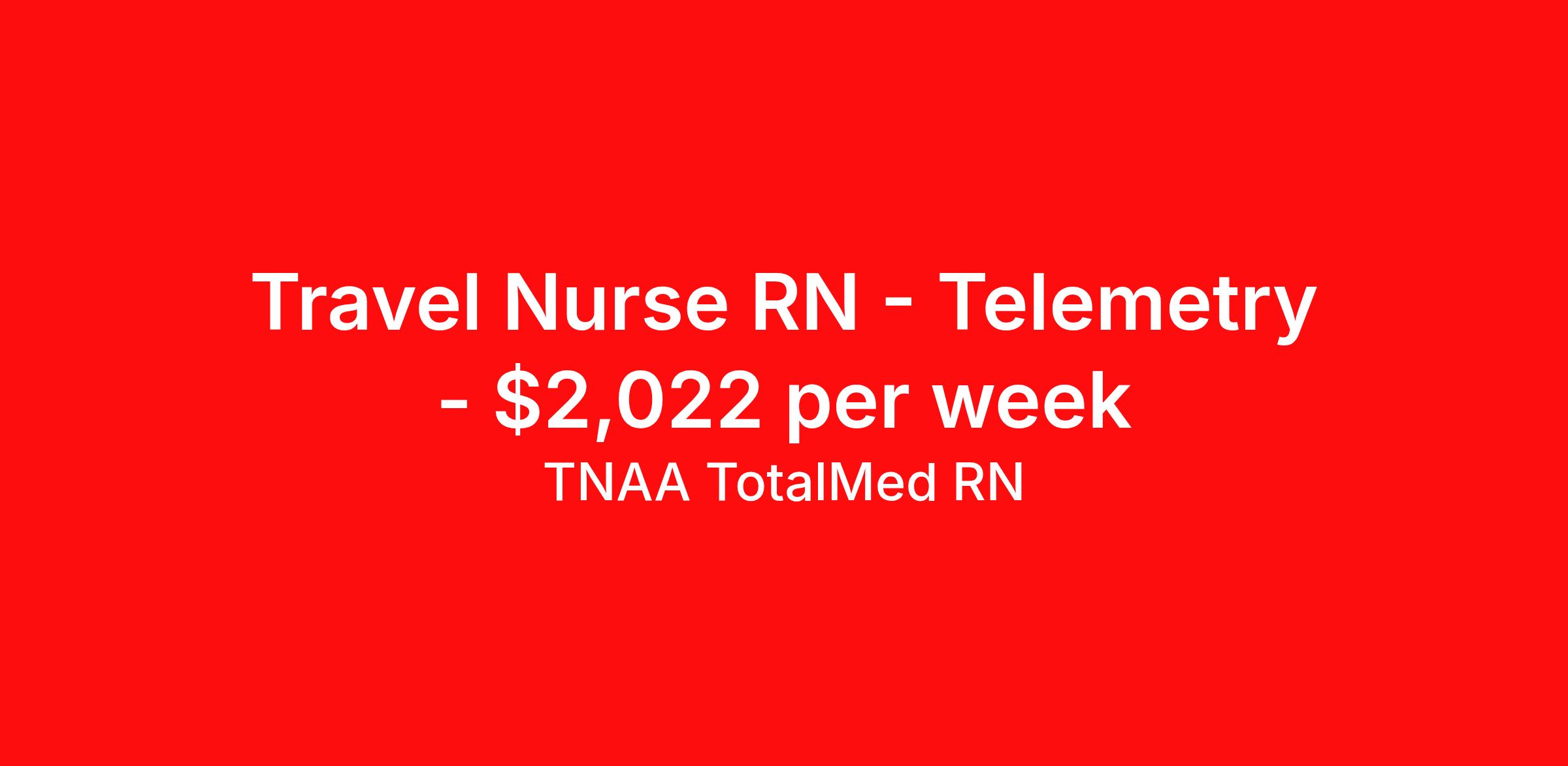 TNAA TotalMed RN is seeking a travel nurse RN Telemetry for a travel nursing job in Petersburg, Virginia. Job Description & Requirements Specialty: Telemetry Discipline: RN Duration: 13 weeks 36 hours per week Shift: 12 hours, nights Employment Type: Travel We're looking for Telemetry RNs for an immediate travel nurse opening in Petersburg, VA. The right RN should have 1-2 years' recent acute care experience. Read below for more requirements. As a TELE Travel Nurse, you will provide care by connecting patients to machines that measure heart rate, blood pressure, breathing rate, as well as blood-oxygen levels and electrocardiogram information. These machines then send data to computer screens for RNs to monitor. Telemetry RNs read and interpret the data to better determine patient care. As a TELE Travel Nurse, you should be prepared to perform the following tasks: Provide basic bedside care. Monitor and adjust specialized equipment used on patients, and interpret and record electronic displays. Identify irregular telemetry readings and notify appropriate medical team members. Initiate corrective action whenever information from monitoring equipment shows adverse symptomatology. TELE Travel Nurses should be able to stand and walk for long periods of time, as well as bend, lean and stoop without difficulty. RNs should be able to easily lift 20 pounds. Moving or lifting of patients may require lifting of up to 50 pounds at times. RNs must have specific vision abilities including close vision, distance vision, color vision, peripheral vision, depth perception and ability to adjust focus. Requirements*: ACLS, BLS, NIH, 2 Years * Additional certifications may be required before beginning an assignment. TotalMed Travel Job ID 1394140. Pay package is based on 12 hour shifts and 36 hours per week (subject to confirmation) with tax-free stipend amount to be determined. Posted job title: Telemetry - TELE RN - Travel Nurse About TNAA TotalMed RN TotalMed is a Top Ten, travel nursing and healthcare staffing agency with the mission of igniting purpose in healthcare. The organization staffs nurses, therapists, pharmacists, and other clinicians of all specialties in all 50 states. They offer local and travel jobs and match caregivers with the right organization to assist both facilities and patients. As an organization, they focus on putting highly-skilled staff into facilities to ensure adequate staffing for a better patient experience. TotalMed specializes in recruiting and placing healthcare professionals in travel, PRN, and permanent positions across the country in Nursing and Allied Health. Throughout 2020, the organization filled roles at even the most short-staffed facilities during the most challenging time in healthcare. By matching the right travel healthcare professional with the right organization, TotalMed continues to offer a lifeline to facilities and their patients. Benefits Weekly pay Guaranteed Hours Continuing Education 401k retirement plan Sick pay Wellness and fitness programs Referral bonus Employee assistance programs Medical benefits Dental benefits Vision benefits Benefits start day 1