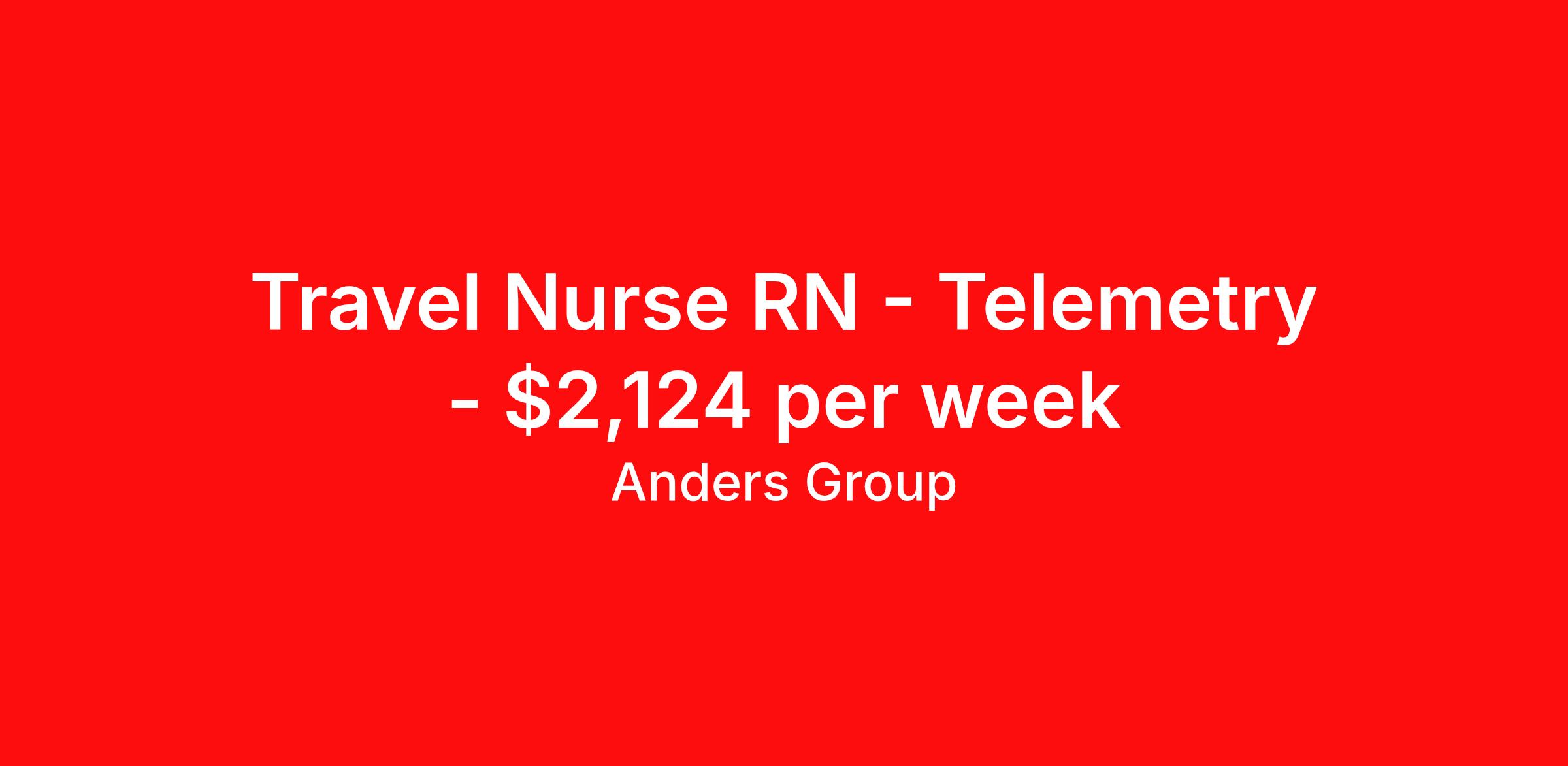 Anders Group is seeking a travel nurse RN Telemetry for a travel nursing job in Petersburg, Virginia. Job Description & Requirements Specialty: Telemetry Discipline: RN Start Date: 04/06/2026 Duration: 13 weeks 36 hours per week Shift: 12 hours, nights Employment Type: Travel Anders Group Job ID 1001735. Pay package is based on 12 hour shifts and 36 hours per week (subject to confirmation) with tax-free stipend amount to be determined. Posted job title: RN Telemetry (8686) About Anders Group WHY ANDERS? Anders Group is a Joint Commission accredited staffing agency and stands out from other agencies by our commitment to making sure our travelers are given the best customer service. Our team works hard to find the best jobs with the most aggressive rates! Anders Group offers rewarding assignments and competitive compensation packages, nationwide! We offer the following benefits from day one: Health Insurance, Including a Buy-up Option Dental Insurance Vision Insurance Life Insurance 401(k) Licensure Reimbursement Premium Pay Packages CEU Reimbursements Daily Per Diems Travel Reimbursements Rental Car Allowances Continuing Education Resources Referral Bonus And Many More! THE ANDERS DIFFERENCE You're committed to providing exceptional healthcare. We're committed to you. Anders Group was founded by a team of healthcare recruiters who had built strong relationships with healthcare facilities and professionals nationwide. As staffing firms shifted their focus to numbers and margins, these recruiters saw a need for a company to take a different approach to staffing. Anders Group was founded in 2010 to do just that. We focus on individual and facility goals to make quality placements. Great people working with great facilities make for the best placements. Through our focus on providing the best experience to Allied and Nursing health care professionals, Anders Group has grown to be a top staffing firm in Healthcare. We look forward to working with you! Benefits Medical benefits Dental benefits Vision benefits Life insurance 401k retirement plan License and certification reimbursement Continuing Education Referral bonus