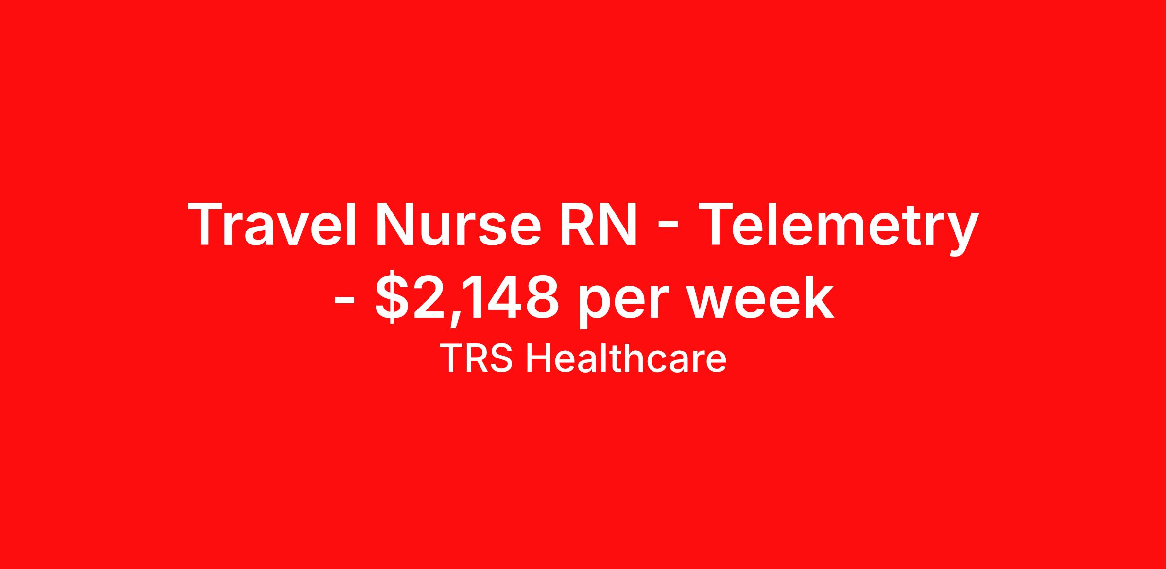 TRS Healthcare is seeking a travel nurse RN Telemetry for a travel nursing job in Hartford, Connecticut. Job Description & Requirements Specialty: Telemetry Discipline: RN Start Date: 04/06/2026 Duration: 13 weeks 36 hours per week Shift: 12 hours, nights Employment Type: Travel TRS Healthcare Job ID 1448747. Pay package is based on 12 hour shifts and 36 hours per week (subject to confirmation) with tax-free stipend amount to be determined. Posted job title: Telemetry Unit - Cardiac Registered Nurse About TRS Healthcare TRS Healthcare has been a leader in the healthcare staffing industry for over 25 years, providing exceptional career opportunities for travel nurses and allied health professionals. An RN-founded, woman-owned company, TRS Healthcare has team members in all 50 states. We recruit and support registered nurses, licensed practical nurses, surgical technicians, respiratory therapists, imaging technologists, laboratory specialists, and other experienced nursing and allied healthcare professionals. We staff hundreds of healthcare facilities across the U.S. in urban, rural, and underserved areas, including multi-state hospital systems, critical access hospitals, rural community hospitals, long-term care facilities, trauma centers, standalone clinics, and more. Learn more about TRS Healthcare at trshealthcare.com .