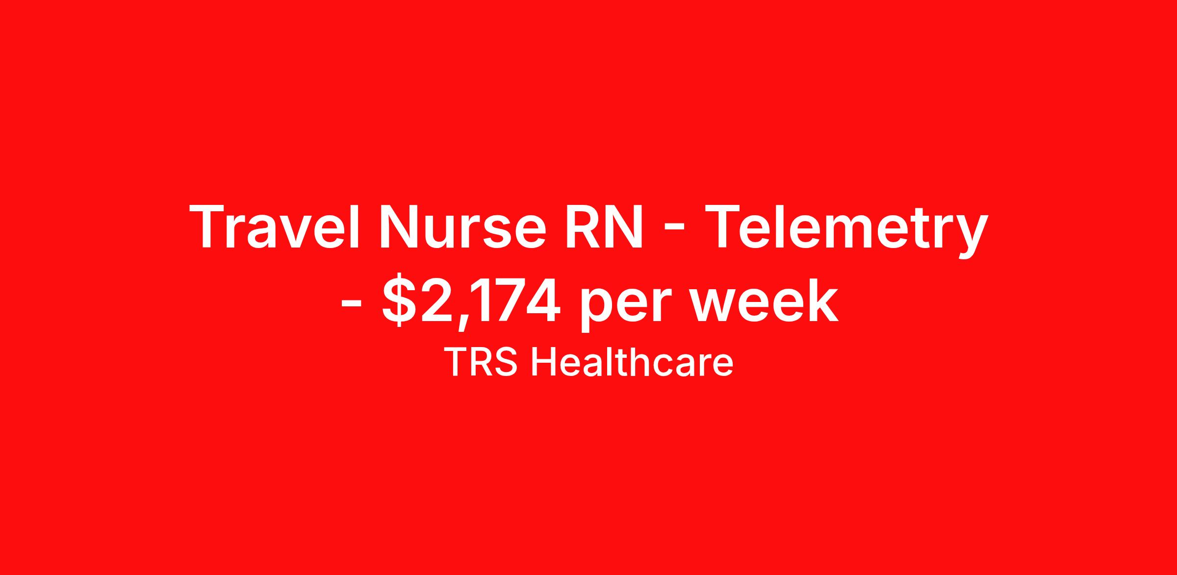 TRS Healthcare is seeking a travel nurse RN Telemetry for a travel nursing job in Belleville, Illinois. Job Description & Requirements Specialty: Telemetry Discipline: RN Start Date: 04/20/2026 Duration: 13 weeks 36 hours per week Shift: 12 hours, nights Employment Type: Travel TRS Healthcare Job ID 1447563. Pay package is based on 12 hour shifts and 36 hours per week (subject to confirmation) with tax-free stipend amount to be determined. Posted job title: Telemetry Unit Registered Nurse About TRS Healthcare TRS Healthcare has been a leader in the healthcare staffing industry for over 25 years, providing exceptional career opportunities for travel nurses and allied health professionals. An RN-founded, woman-owned company, TRS Healthcare has team members in all 50 states. We recruit and support registered nurses, licensed practical nurses, surgical technicians, respiratory therapists, imaging technologists, laboratory specialists, and other experienced nursing and allied healthcare professionals. We staff hundreds of healthcare facilities across the U.S. in urban, rural, and underserved areas, including multi-state hospital systems, critical access hospitals, rural community hospitals, long-term care facilities, trauma centers, standalone clinics, and more. Learn more about TRS Healthcare at trshealthcare.com .