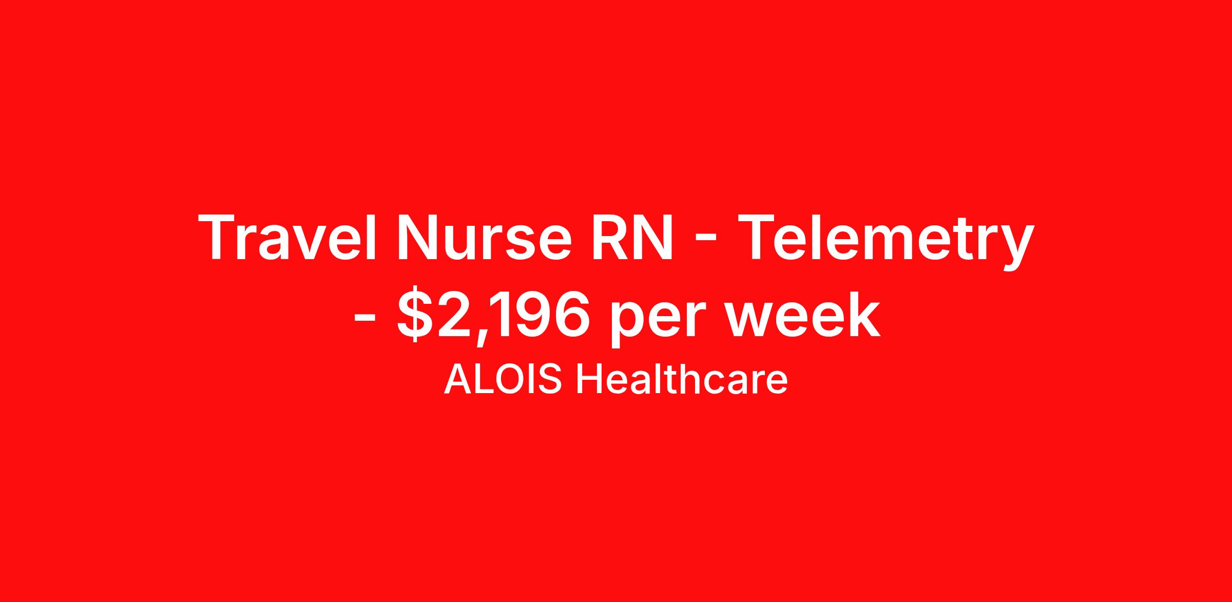 ALOIS Healthcare is seeking a travel nurse RN Telemetry for a travel nursing job in Bel Air, Maryland. Job Description & Requirements Specialty: Telemetry Discipline: RN Start Date: 04/06/2026 Duration: 13 weeks 36 hours per week Shift: 12 hours, nights Employment Type: Travel A telemetry RN has several job responsibilities including: Monitors EKG output and keeps doctors informed of any changes. Recording vital signs, including oxygen levels, blood pressure, breathing patterns, etc. Monitoring patient progress and updating patient medical records as needed. ALOIS Healthcare Job ID 17929514. Pay package is based on 12 hour shifts and 36.0 hours per week (subject to confirmation) with tax-free stipend amount to be determined. Posted job title: RN TELE About ALOIS Healthcare Why ALOIS Healthcare? ALOIS means “brave warrior” and that’s what you are- Warrior in Scrubs! Just as you advocate for your patients, we will advocate for you. The pay you deserve. The support you need. We’re in your corner for every battle – because you shouldn’t settle for anything less when it comes to your career. We offer: · Industry-leading pay Generous cost of living and housing stipends · Opportunities for referral, sign-on, and extension bonuses · Weekly health insurance or health insurance Marketplace weekly bonus · Continuing education credits We’re proud to be recognized globally as a certified minority-owned staffing supplier. At ALOIS Healthcare: · Everyone Matters · We are Performance Driven · We are Open, Honest and Direct · We are Transparent · We are Inclusive · We Do the Right Thing We care about you - and your success is our success.