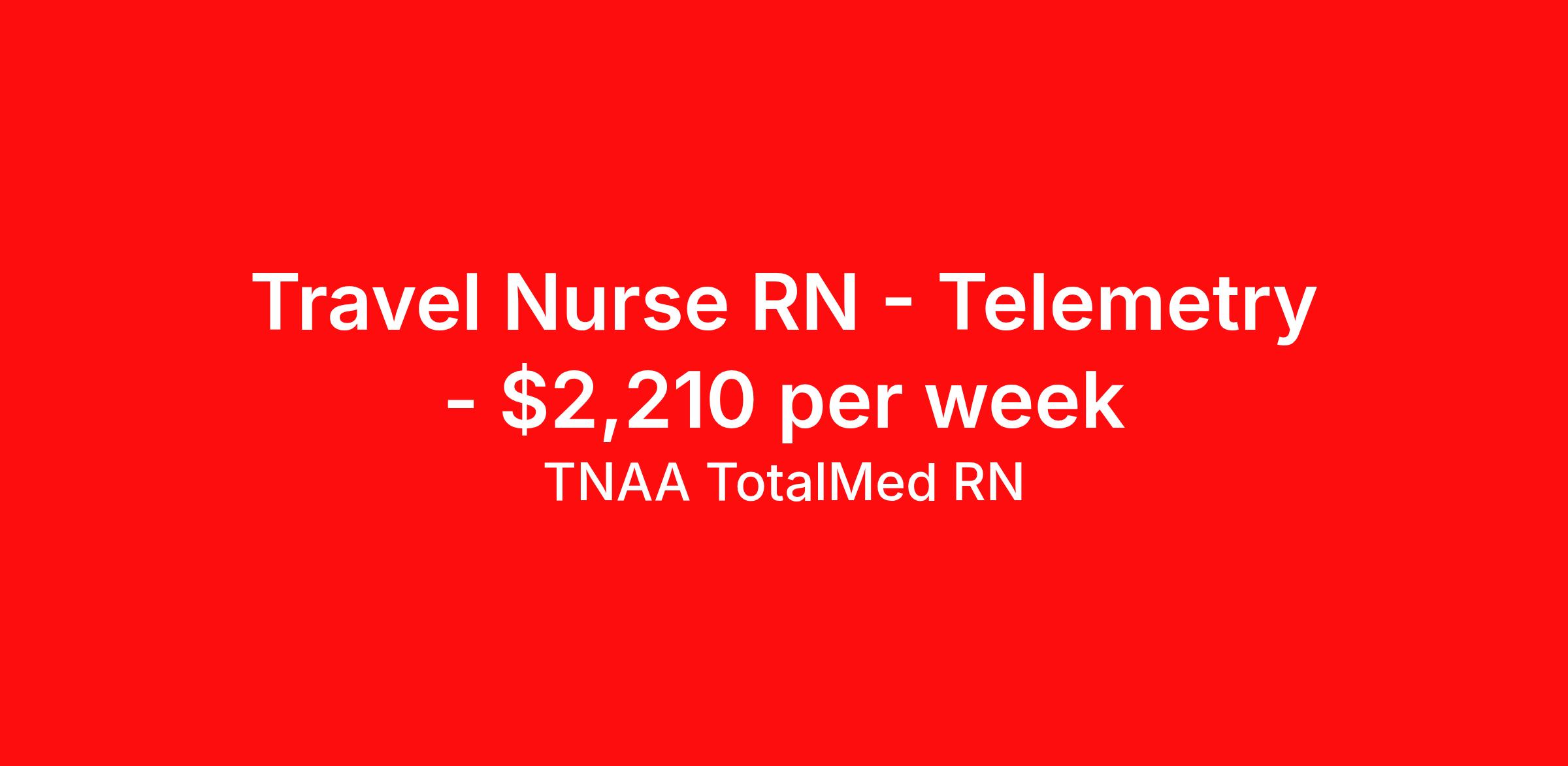 TNAA TotalMed RN is seeking a travel nurse RN Telemetry for a travel nursing job in Evansville, Indiana. Job Description & Requirements Specialty: Telemetry Discipline: RN Start Date: 04/06/2026 Duration: 13 weeks 36 hours per week Shift: 12 hours, days Employment Type: Travel We're looking for Telemetry RNs for an immediate travel nurse opening in Evansville, IN. The right RN should have 1-2 years' recent acute care experience. Read below for more requirements. As a TELE Travel Nurse, you will provide care by connecting patients to machines that measure heart rate, blood pressure, breathing rate, as well as blood-oxygen levels and electrocardiogram information. These machines then send data to computer screens for RNs to monitor. Telemetry RNs read and interpret the data to better determine patient care. As a TELE Travel Nurse, you should be prepared to perform the following tasks: Provide basic bedside care. Monitor and adjust specialized equipment used on patients, and interpret and record electronic displays. Identify irregular telemetry readings and notify appropriate medical team members. Initiate corrective action whenever information from monitoring equipment shows adverse symptomatology. TELE Travel Nurses should be able to stand and walk for long periods of time, as well as bend, lean and stoop without difficulty. RNs should be able to easily lift 20 pounds. Moving or lifting of patients may require lifting of up to 50 pounds at times. RNs must have specific vision abilities including close vision, distance vision, color vision, peripheral vision, depth perception and ability to adjust focus. Requirements*: BLS, ACLS, NIH, 2 Years * Additional certifications may be required before beginning an assignment. TotalMed Travel Job ID 1395665. Pay package is based on 12 hour shifts and 36 hours per week (subject to confirmation) with tax-free stipend amount to be determined. Posted job title: Telemetry - TELE RN - Travel Nurse About TNAA TotalMed RN TotalMed is a Top Ten, travel nursing and healthcare staffing agency with the mission of igniting purpose in healthcare. The organization staffs nurses, therapists, pharmacists, and other clinicians of all specialties in all 50 states. They offer local and travel jobs and match caregivers with the right organization to assist both facilities and patients. As an organization, they focus on putting highly-skilled staff into facilities to ensure adequate staffing for a better patient experience. TotalMed specializes in recruiting and placing healthcare professionals in travel, PRN, and permanent positions across the country in Nursing and Allied Health. Throughout 2020, the organization filled roles at even the most short-staffed facilities during the most challenging time in healthcare. By matching the right travel healthcare professional with the right organization, TotalMed continues to offer a lifeline to facilities and their patients. Benefits Weekly pay Guaranteed Hours Continuing Education 401k retirement plan Sick pay Wellness and fitness programs Referral bonus Employee assistance programs Medical benefits Dental benefits Vision benefits Benefits start day 1