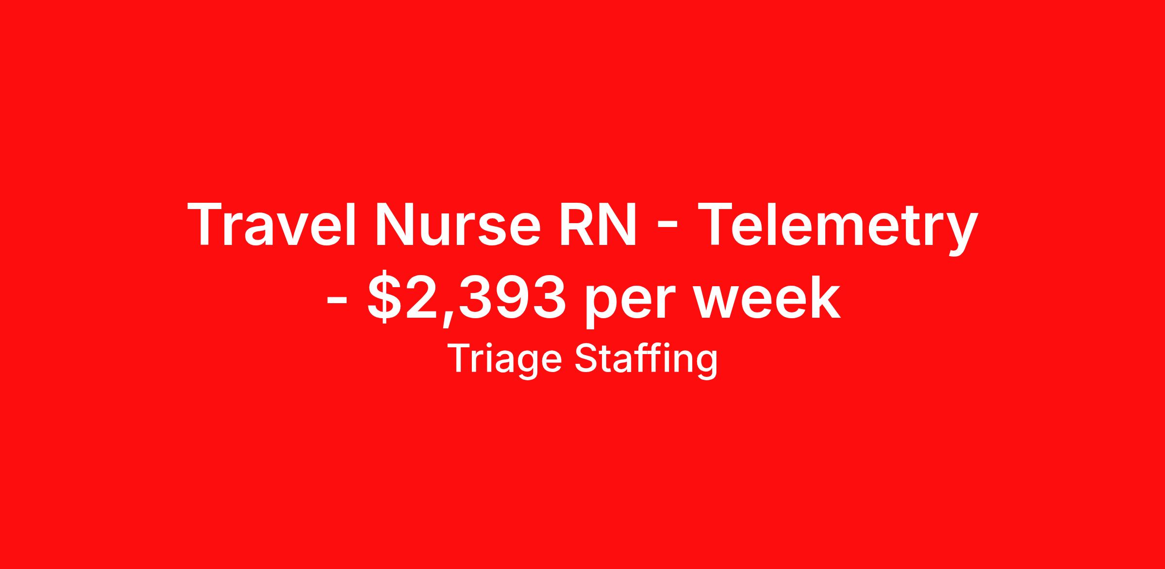 Triage Staffing is seeking a travel nurse RN Telemetry for a travel nursing job in Aberdeen, South Dakota. Job Description & Requirements Specialty: Telemetry Discipline: RN Start Date: 04/06/2026 Duration: 13 weeks 36 hours per week Shift: 12 hours, nights Employment Type: Travel Travel Nursing: Telemetry Aberdeen, SD Location: Aberdeen, SD Start Date: 4/6/2026 Shift Details: 12H Nights 36 hours per week Length: 13 WEEKS Apply for specific facility details.Telemetry RN Triage Staffing Job ID AHGWTXKN. Posted job title: Nursing: Telemetry About Triage Staffing At Triage, we prefer to be real . Real about expectations—both ours and yours. Real about how a decision you make today could affect your tomorrows. Real about how compensation actually works. Real about how great—or grating—your next supervisor may be. Being real allows everyone at Triage to be ready . Ready to serve you with real honesty. So if that gig near the ocean is really no day at the beach, or that third shift comes with a second-class rate, we tell you. So you can be ready, too. We staff all five major divisions of acute care—nursing, lab, radiology, cardiopulmonary and rehab therapy, offering: - Competitive, custom pay packages - One point of contact for both travelers and facilities (per division) - A reliable recruiter who's got your back throughout your entire assignment - In-house compliance and accounting specialists - A clinical liaison team available 24/7 to offer medical and professional support and career development - A mentoring program that is run and managed by actual clinicians—yeah, you read that right - And more (because of course there’s more) Are we the biggest? No. Are we the best? That’s rather subjective, but we’re trying to be. Will we work like hell to get you as close to your idea of heaven as possible? Yes. Yes, we will. Benefits: Day One comprehensive, nationwide insurance plans for health, vision and dental and life—including a HSA option Day One 401(k) program with employer-matching contributions once eligible Facility cancelling protection—your time is money on and off-the-clock Guaranteed hours Weekly paychecks via direct deposit Earned vacation bonuses for time worked Paid holidays Employee assistance program (EAP)—your mental health is important, too Continuing education, certification and licensing reimbursement Workers comp—because accidents happen Top-rated professional liability insurance Company provided housing options Referral bonus—$750 in your pocket after they’ve completed a 13-week assignment
