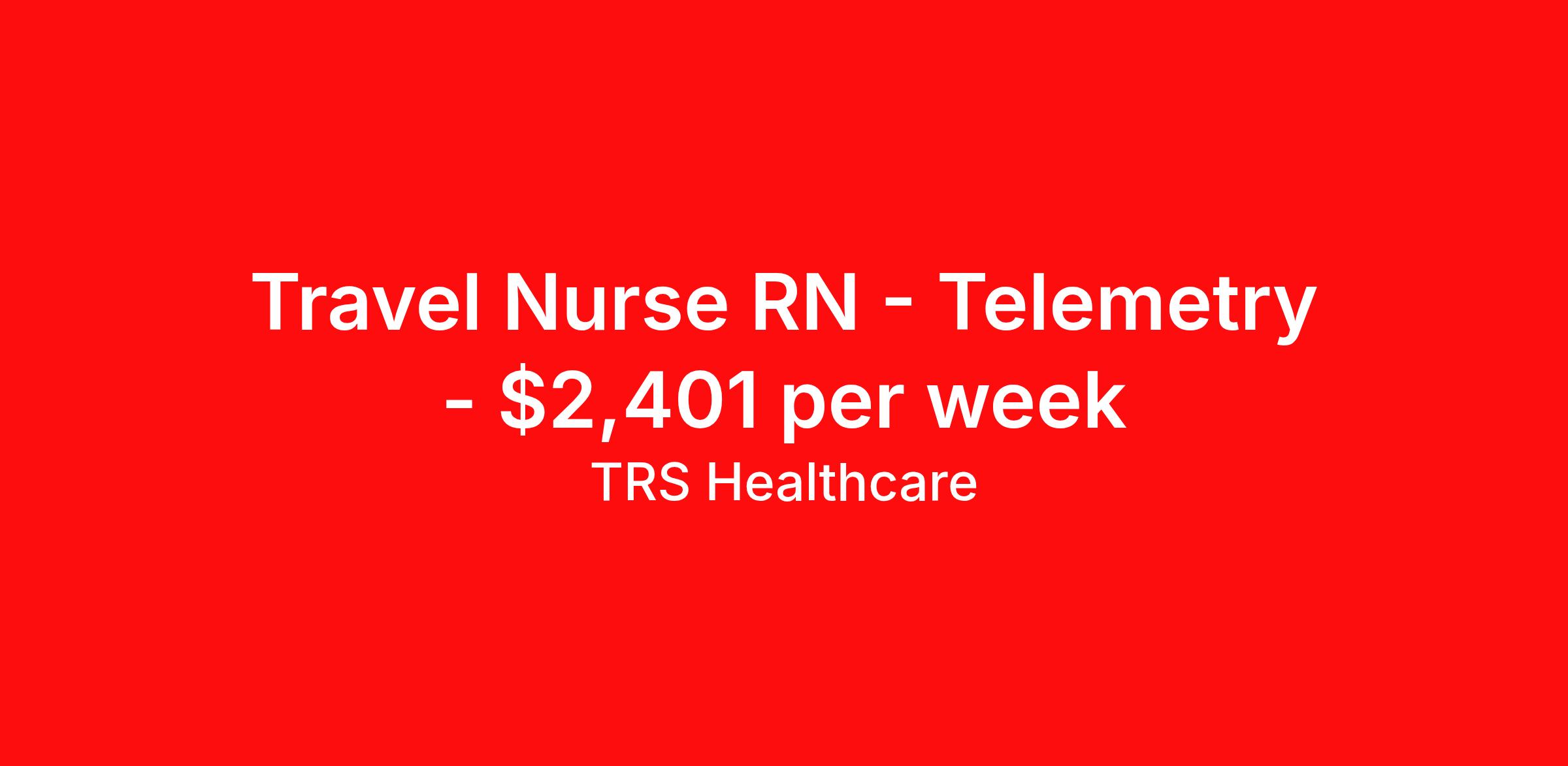 TRS Healthcare is seeking a travel nurse RN Telemetry for a travel nursing job in Portland, Maine. Job Description & Requirements Specialty: Telemetry Discipline: RN Start Date: 03/30/2026 Duration: 14 weeks 36 hours per week Shift: 12 hours, days Employment Type: Travel TRS Healthcare Job ID 1448515. Pay package is based on 12 hour shifts and 36 hours per week (subject to confirmation) with tax-free stipend amount to be determined. Posted job title: Telemetry Unit - Cardiac Registered Nurse About TRS Healthcare TRS Healthcare has been a leader in the healthcare staffing industry for over 25 years, providing exceptional career opportunities for travel nurses and allied health professionals. An RN-founded, woman-owned company, TRS Healthcare has team members in all 50 states. We recruit and support registered nurses, licensed practical nurses, surgical technicians, respiratory therapists, imaging technologists, laboratory specialists, and other experienced nursing and allied healthcare professionals. We staff hundreds of healthcare facilities across the U.S. in urban, rural, and underserved areas, including multi-state hospital systems, critical access hospitals, rural community hospitals, long-term care facilities, trauma centers, standalone clinics, and more. Learn more about TRS Healthcare at trshealthcare.com .