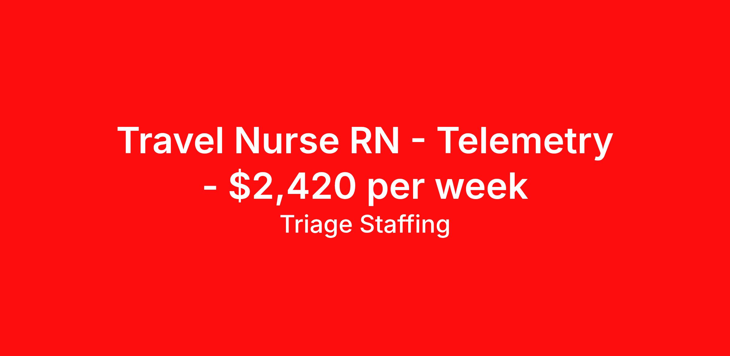 Triage Staffing is seeking a travel nurse RN Telemetry for a travel nursing job in Hyannis, Massachusetts. Job Description & Requirements Specialty: Telemetry Discipline: RN Start Date: 04/13/2026 Duration: 13 weeks 36 hours per week Shift: 12 hours, nights Employment Type: Travel Travel Nursing: Telemetry Hyannis Location: Hyannis Start Date: 4/13/2026 Shift Details: 12H Nights 36 hours per week Length: 13 WEEKS Apply for specific facility details.Telemetry RN Triage Staffing Job ID YFRF993P. Posted job title: Nursing: Telemetry About Triage Staffing At Triage, we prefer to be real . Real about expectations—both ours and yours. Real about how a decision you make today could affect your tomorrows. Real about how compensation actually works. Real about how great—or grating—your next supervisor may be. Being real allows everyone at Triage to be ready . Ready to serve you with real honesty. So if that gig near the ocean is really no day at the beach, or that third shift comes with a second-class rate, we tell you. So you can be ready, too. We staff all five major divisions of acute care—nursing, lab, radiology, cardiopulmonary and rehab therapy, offering: - Competitive, custom pay packages - One point of contact for both travelers and facilities (per division) - A reliable recruiter who's got your back throughout your entire assignment - In-house compliance and accounting specialists - A clinical liaison team available 24/7 to offer medical and professional support and career development - A mentoring program that is run and managed by actual clinicians—yeah, you read that right - And more (because of course there’s more) Are we the biggest? No. Are we the best? That’s rather subjective, but we’re trying to be. Will we work like hell to get you as close to your idea of heaven as possible? Yes. Yes, we will. Benefits: Day One comprehensive, nationwide insurance plans for health, vision and dental and life—including a HSA option Day One 401(k) program with employer-matching contributions once eligible Facility cancelling protection—your time is money on and off-the-clock Guaranteed hours Weekly paychecks via direct deposit Earned vacation bonuses for time worked Paid holidays Employee assistance program (EAP)—your mental health is important, too Continuing education, certification and licensing reimbursement Workers comp—because accidents happen Top-rated professional liability insurance Company provided housing options Referral bonus—$750 in your pocket after they’ve completed a 13-week assignment
